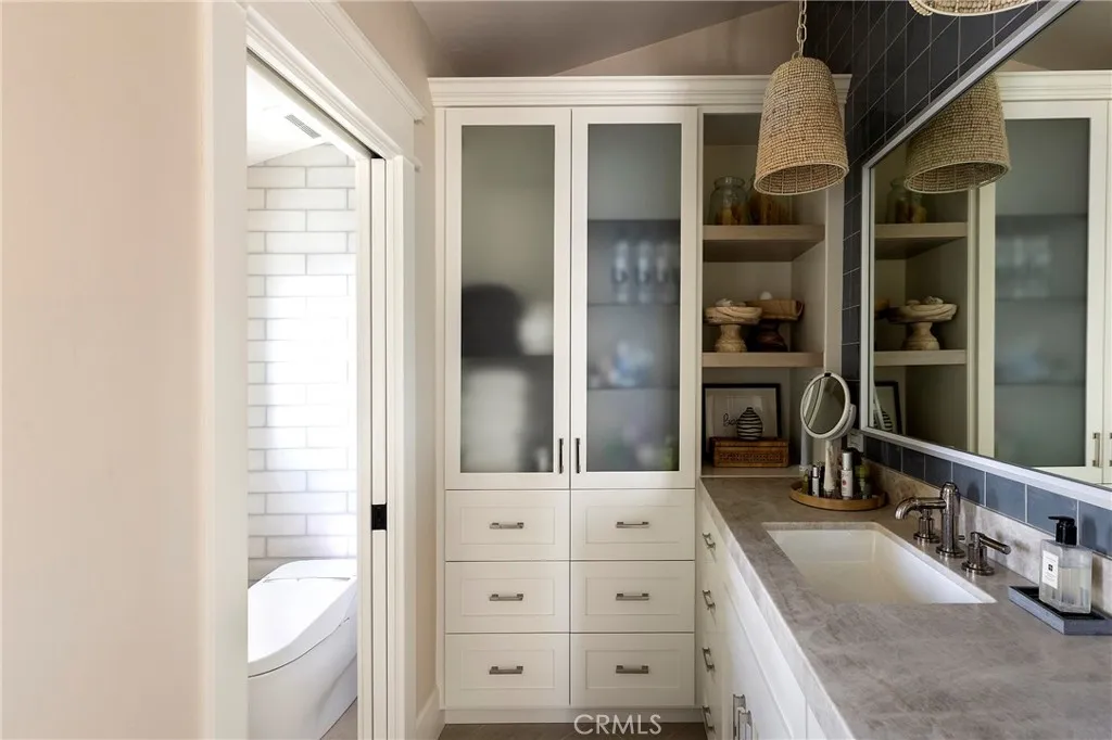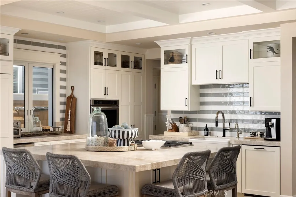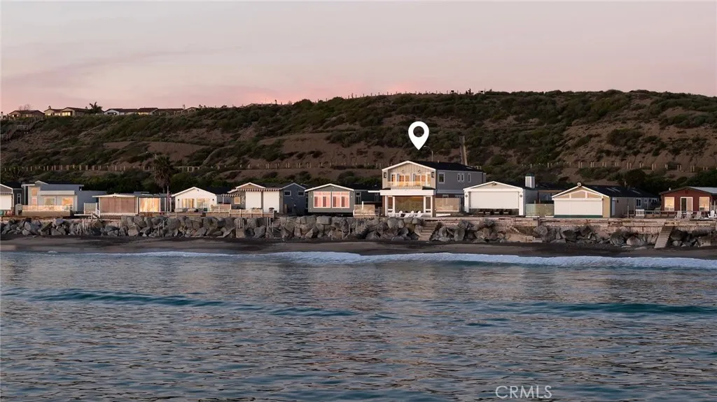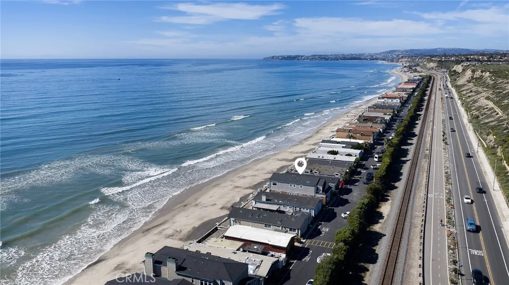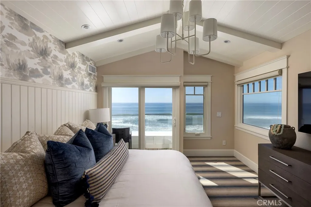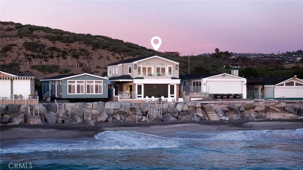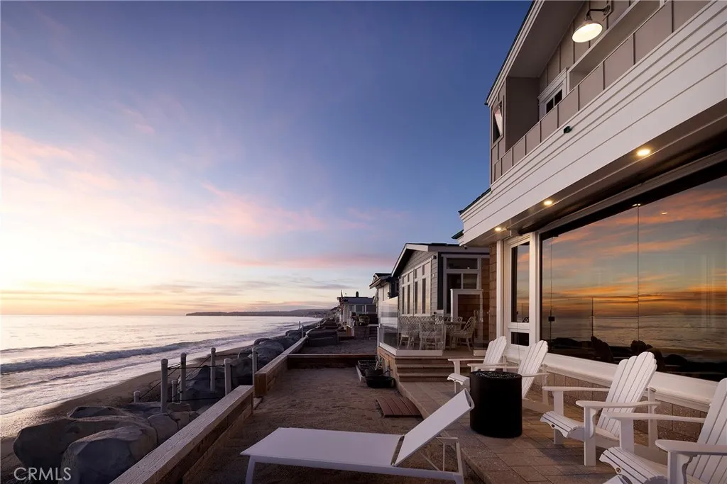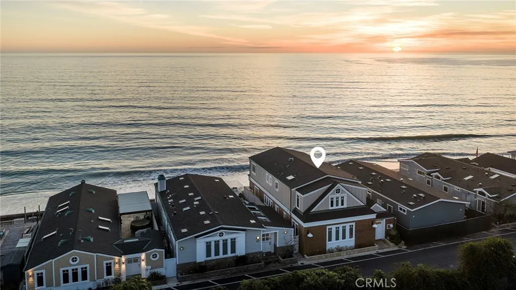 Drawing inspiration from the great shingled estates of Cape Cod yet firmly rooted on the sands of San Clemente, this oceanfront residence in Capistrano Shores is a study in craftsmanship, proportion, and restraint. Set directly at the waters edge, both levels command sweeping views of the Pacific, Catalina Island, the harbor, pier, and coastline stretching north and south. Spanning nearly 3,000 square feet with six bedrooms and five baths, the home is composed for legacy living, generous in scale and intentional in every line. Arrival unfolds along a gated side approach, creating a refined transition to the interior, while the rear oceanfront terrace becomes the true centerpiece with honed travertine underfoot, a private sandy lounge area, and dedicated stairs descending directly to the beach. A pass-through kitchen window, outdoor shower, and convenient bath access create a seamless exchange between sea and interior. Inside, a Dutch door opens to light-filled living spaces defined by coffered ceilings, tailored millwork, and a commanding picture window that frames the Pacific as living artwork. The kitchen has been thoughtfully reimagined with satin Taj Mahal quartzite, custom cabinetry, integrated beverage drawers and ice maker, an Ann Sacks tile backsplash, and an apron-front sink, refined and understated, designed for gathering. Whitewater Oak LVP flooring unifies the home. Brazilian quartzite defines the butlers bar and laundry, while labradorite granite lends depth to the upstairs guest bath. Of the two oceanfront primary suites, one bath is appointed in satin Taj Mah