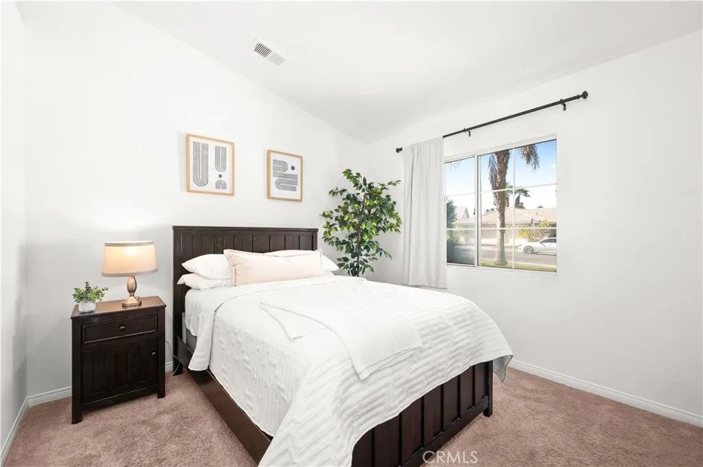 More space, more flexibility, and a fantastic North La Quinta location- this airy and light-filled 3-bedroom plus bonus room home offers 1,621 sq. ft. of comfortable desert living in the highly desirable Cactus Flower community, complete with a spacious 3-car garage and no HOA. Vaulted ceilings and abundant natural light create a bright, welcoming atmosphere throughout the main living areas. Just off the entry, a formal living room and dining space provide an inviting setting for gatherings, while the cozy family room with fireplace opens directly to the backyard, creating an easy flow for everyday living and entertaining. Granite countertops, stainless steel appliances, and generous cabinetry highlight the upgraded kitchen, offering both style and functionality. Privately situated, the primary suite features vaulted ceilings, a walk-in closet, and an en-suite bath with dual sinks and a separate shower. Two additional bedrooms provide comfortable accommodations for family or guests, while built-ins enhance the spacious bonus roomperfect for a home office, gym, hobby space, or additional storage. Outdoors, a private backyard retreat awaits with a heated pool, covered patio, mature fruit trees, and views of the nearby mountains, creating the perfect setting for relaxing evenings or weekend gatherings. Located within the highly regarded Desert Sands Unified School District with IB World schools, and just minutes from parks, shopping, dining, and world-class golf. Situated in the lower-cost IID electric district, this home offers both lifestyle and value in one of North La Quin
