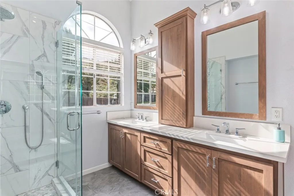 Spacious 4-bed 3-bath home with High Ceilings, a Large Private Backyard, No HOA, and Low Property Tax. With over $100,000 spent on New Roof, New HVAC, Remodeled Primary Bathroom, Window Shutters, New Tankless Water Heater, a Flow-Tech Water Softener System, and an Improved Front Yard for Enhanced Curb Appeal. Heres a list of features in the home: Tile floors at entry, kitchen, family room, and bathrooms. Wood plank floors in the formal living, formal dining, stairwell, and upstairs bedrooms. Lots of windows and tall ceilings throughout brighten up this home and bring a spacious feel from the moment you walk in. Downstairs youll find a formal living room, formal dining room, and a family room that transitions nicely into the kitchen. A large island with breakfast bar seating anchors this space, with stainless steel appliances and a bay window looking out into your large backyard. Slider access into the backyard is possible from both the kitchen and family room. The 3-car tandem garage is a pleasant surprise with loads of space for vehicles, tools, toys, or extra storage. Upstairs, youll love the remodeled primary bathroom with mirrored walk-in closet. A balcony off the primary bedroom provides a bonus escape to relax as you look out toward the hills behind the home. There are essentially no rear neighbors for added privacy. All upstairs bedrooms are generous in size, with ceilings fans and vaulted ceilings adding an extra sense of elbow room. And if needed, the downstairs formal dining can easily become a home office or 5th bedroom. Upgrades to the curb appeal include an ele