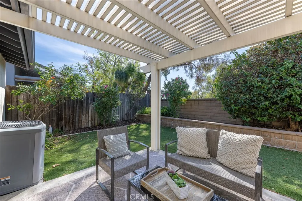Located on a quiet cul-de-sac in the highly desirable Travis Ranch community of Yorba Linda, 21182 Via Este Drive offers a rare blend of privacy, natural beauty, and everyday comfort. With direct access to nearby walking trails and greenbelts, this neighborhood is known for its peaceful streets, scenic foothill surroundings, and a true sense of calm. Thoughtfully positioned to capture natural light, the home opens into spacious living and dining areas highlighted by vaulted ceilings, a cozy fireplace, and dual sliding glass doors that create an effortless indoor-outdoor connection. At the heart of the home, the light and airy kitchen features crisp white cabinetry paired with stone countertops, recessed lighting, a charming breakfast nook, and a convenient breakfast counter. A wall of windows overlooks the front yard, filling the space with soft morning light and views of the surrounding greenery. The primary suite serves as a tranquil retreat with high ceilings, generous proportions, dual closets including custom built-in storage, and a well-appointed en-suite bath complete with a soaking tub, separate walk-in shower, and dual-sink vanity with stone countertop. A spacious secondary bedroom offers exceptional versatility, easily accommodating guests, a home office, or creative space. The updated hall bath is finished with porcelain wood-grain tile flooring, a stone countertop, and a shower/tub combination. Step outside to a private backyard designed for relaxation and easy maintenance. Artificial turf, block walls, and an alumawood patio cover create a clean and inviting ou