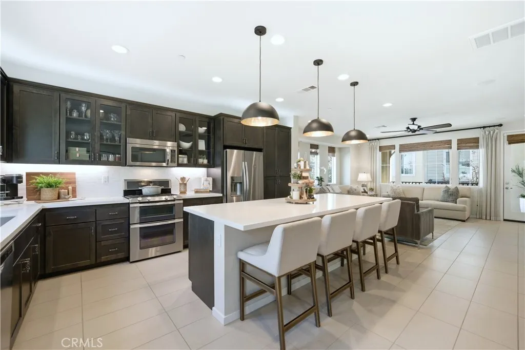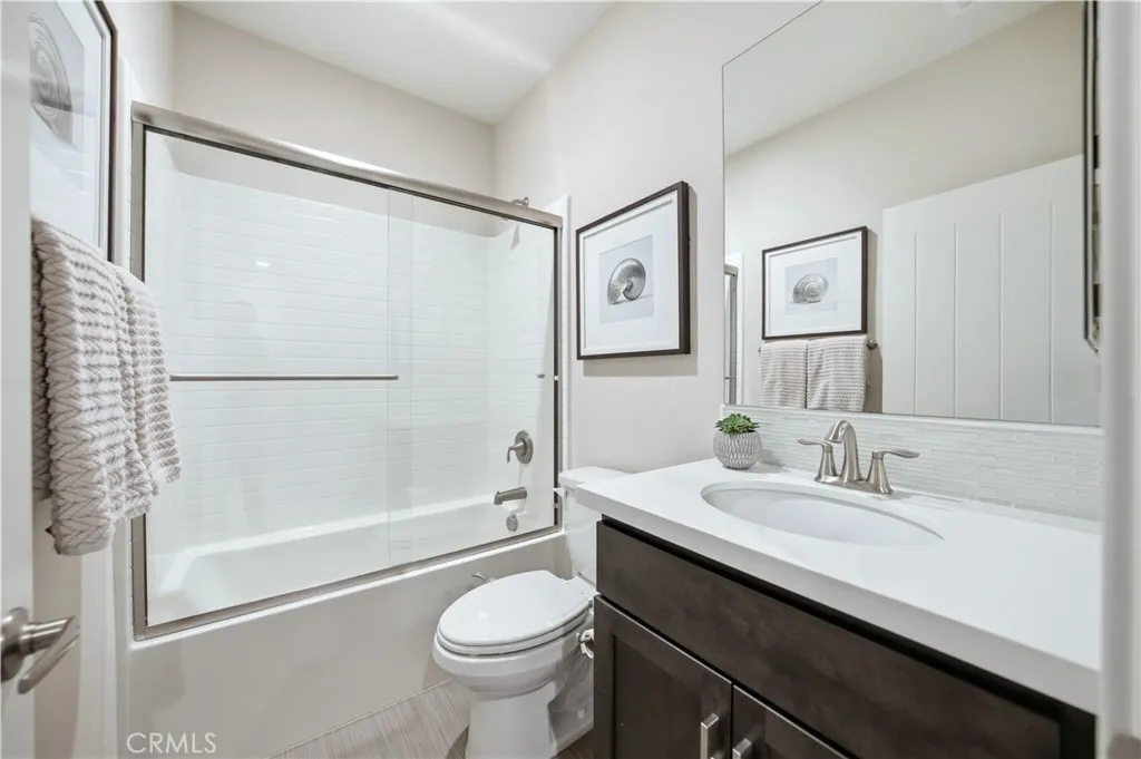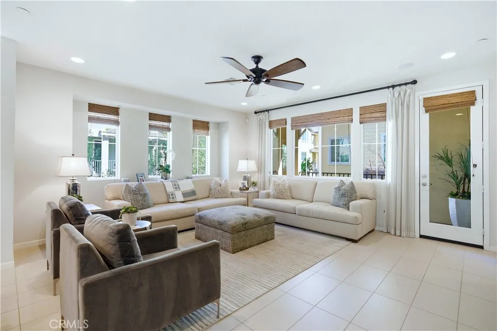 Welcome to this beautifully upgraded largest former model three-story home located in the desirable Bonita Village community, offering modern design, spacious living, and resort-style amenities. Built in 2017 and offering approximately 2,225 square feet, this thoughtfully designed home features 4 bedrooms and 4 bathrooms, including a flexible ground-level bonus room that can serve as a fourth bedroom, office, or guest space. The main living level showcases an open-concept layout filled with natural light, seamlessly connecting the living room, dining area, and kitchen. The living space is highlighted by a custom built-in entertainment center with a stunning marble backsplash, creating a stylish focal point perfect for relaxing or entertaining. The kitchen is the centerpiece of the home and features quartz countertops, dark shaker cabinetry, stainless steel appliances, glass cabinet accents, and an oversized center island with seating perfect for entertaining and everyday living. Upstairs, the spacious primary suite offers a relaxing retreat with plantation shutters, walk-in closet with built-in organizers and an elegant ensuite bathroom featuring dual sinks, quartz countertops, a soaking tub, and a separate glass-enclosed shower. Additional bedrooms are generously sized with built-in closet organizers, and the upstairs laundry room adds convenience. Enjoy fresh air and neighborhood views from the private covered balcony. Additional highlights include recessed lighting throughout, tile flooring on the main level, ceiling fans, ample storage, and an attached two-car garage wi