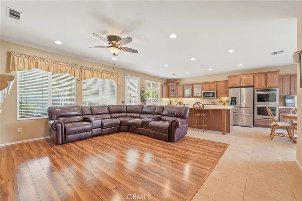 Welcome Home to refined luxury in Parklane an exclusive all single-story within Heritage Lake in Menifee. Tucked away on a quiet cul-de-sac, this breathtaking residence blends elegance, comfort, and effortless sophistication. Meticulously maintained and beautifully upgraded, this immaculate single-story masterpiece is truly move-in ready. Designed with an expansive open-concept layout, the home offers 4 spacious bedrooms, 3.5 designer bathrooms, and a private office. The chef-inspired kitchen is the showpiece featuring a massive statement island, gorgeous countertops, custom cabinet pull-outs, a charming breakfast nook, and elegant flooring that flows seamlessly throughout. Soaring 9-foot ceilings, dramatic interior archways, and a private atrium courtyard create a fresh, modern ambiance with architectural flair. The luxurious primary suite is privately positioned in its own wing, delivering a true retreat experience. Indulge in the spa-like bathroom complete with a deep soaking tub, dual vanities, a glamorous makeup station, a spacious walk-in shower, and an oversized walk-in closet designed to impress. At the heart of the home, the expansive great room exudes warmth and style with its oversized family room and inviting fireplace. Formal living and dining spaces offer flexibility for elegant entertaining, a game room, or a sophisticated lounge all illuminated by an abundance of natural light pouring through large double-pane windows. Step outside to a beautifully landscaped, low-maintenance backyard designed for relaxation and effortless outdoor living. Living in Herita