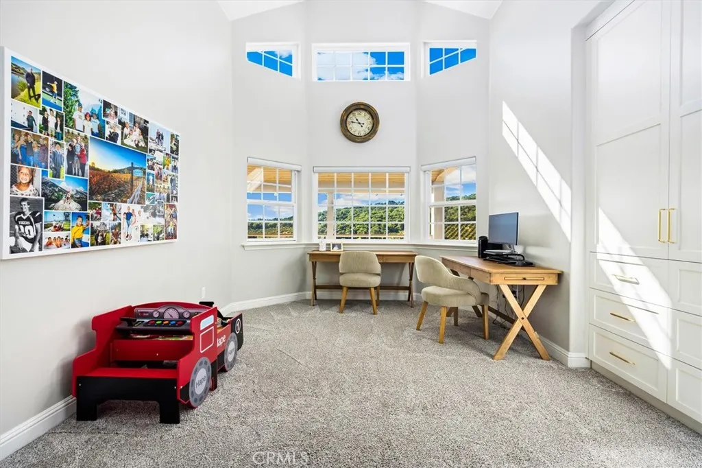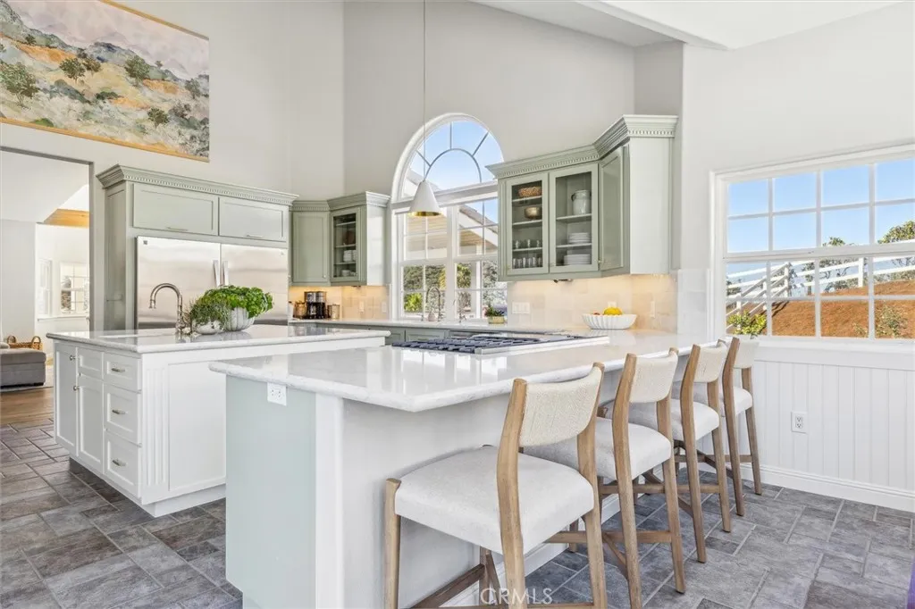 Nestled within the gated community of Falcon Ridge Estates in Arroyo Grande, 172 Falcon Crest Drive is perched atop a recently landscaped 2.65 acre lot and overlooks a lush valley and glimmers of the Pacific Ocean in the distance. The single story 3,769 sqft main residence features 3 spacious bedrooms, 3 bathrooms, and a versatile bonus room that could easily serve as a fourth bedroom, office, or media space. Cathedral ceilings soar throughout the home, complemented by expansive windows that flood the interior with natural light. A wood burning fireplace centers one of the two living rooms, and air conditioning allows for year round comfort. Nearly the entire home was thoughtfully renovated in 2023, including a new roof, wood floors, fully remodeled bathrooms, tankless water heater, new furnace, and most other interior/exterior finishes. One of the homes most captivating features is the expansive 1,700+ sq ft heated wraparound porch. Above the large three-car garage, a private 1,100 sqft guest house (not included in the 3,769 sqft of main residence) provides incredible flexibility and value. Complete with its own kitchen, bathroom, living room, and bedroom, its ideal for family, guests, or potential rental income. Additional highlights include owned solar panels for energy efficiency and sustainability, generous parking, and a fully fenced playground space for littles or pets. This is a rare opportunity to own a unique turnkey property offering space, privacy, and stunning Central Coast viewsall just a few minutes from the charming Village of Arroyo Grande, Pismo Beach, and
