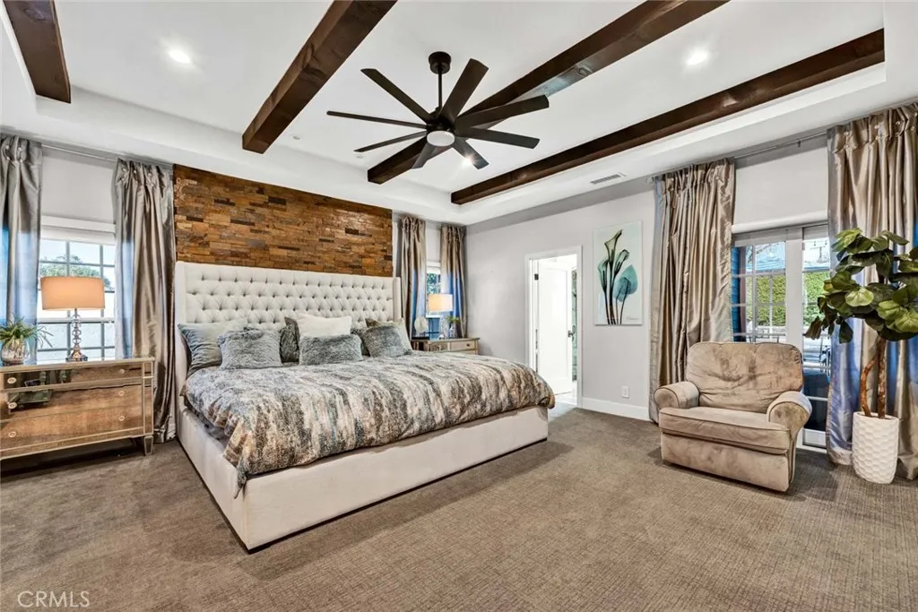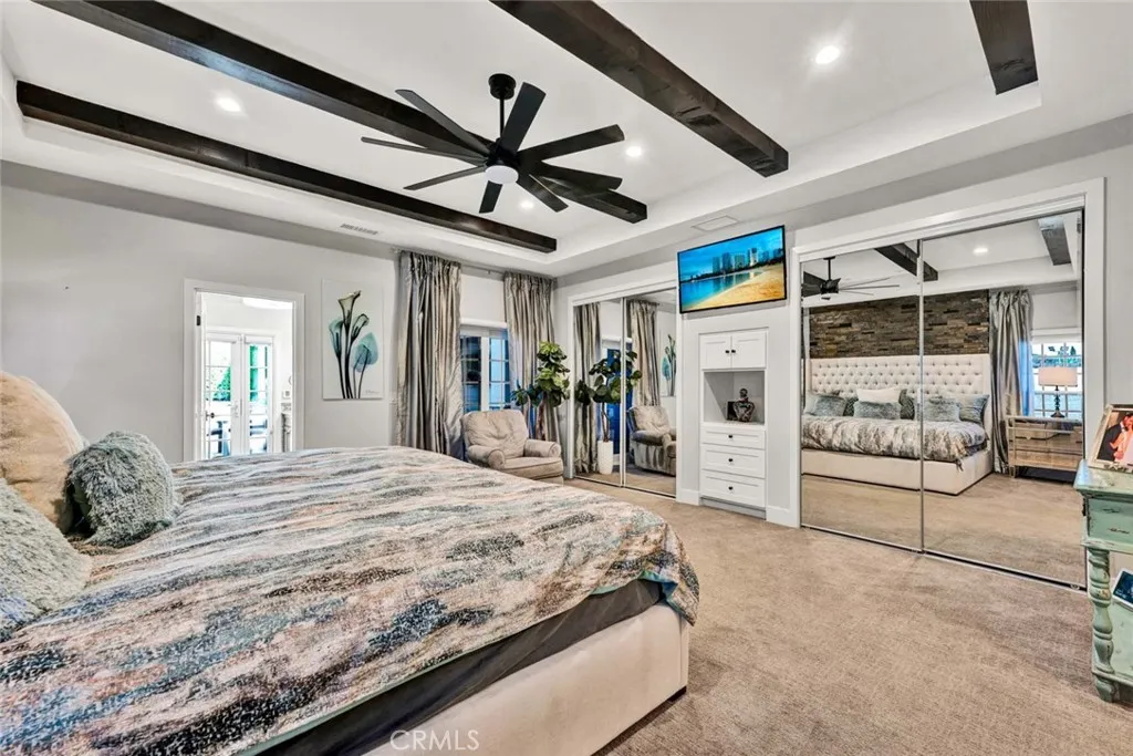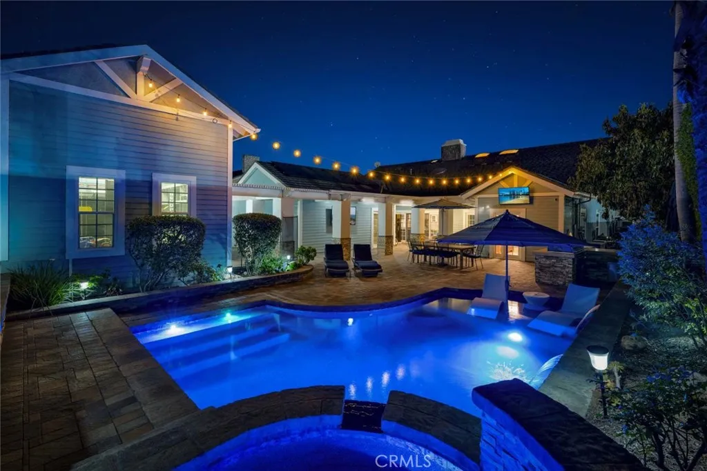 Welcome to 17525 Sunwest Circle, a Custom Estate Nestled on a Sought After Cul-De-Sac in the Heart of Yorba Linda. This Fully Remodeled Smart Home Lives as a Single Level Home with Five Bedrooms (Three Main Floor Bedrooms Including the Primary), Four Full Bathrooms, 100% Owned Solar, Extra Long Paver Driveway, Detached RV/Car Garage with Lift, and a Resort-Style Backyard. Upgrades Include Dual Pane Windows, Metal Roof, Built-In Speaker System, Custom Staircase, New Ducting, New Doors, Custom Closet Systems, Whole House Reverse Osmosis & Water Softener, and Much More! As You Enter the Home, You are Greeted by a Custom Stone Entry and an Expansive Living Room with an Abundance of Natural Light Overlooking the Front Yard. Enjoy a Gourmet Kitchen with Granite Counters, Island with Seating, Custom Cabinetry with Pull-Out Drawers, Stainless Steel Appliances, and Dining Area. The Bar Sits Adjacent to the Kitchen and Enjoys a Wood-Beamed Ceiling and Quartzite Counters. The Spacious Family Room Boasts a Wood-Beamed Ceiling, Built-Ins, Stone Fireplace, Backyard Access, and Opens Directly to the Kitchen. The Luxurious Master Suite Provides a Walk-In Closet with Built-Ins, Additional His/Hers Mirrored Closets, Wood-Beamed Ceiling, and Stacked Stone Accent Wall. The Spa-Like En-Suite Bath Has Dual Vanities, Makeup Vanity, Backyard Access, and Frameless Glass Walk-In Shower with Dual Heads. The Entertainers Backyard is a True Oasis, Featuring a PebbleTec Pool/Spa, Waterfall, Baja Shelf, Pavers, Two Mounted TVs, Covered Patio with Heaters, Pergola, Turf, Built-In BBQ, Fruit Trees (Orange/