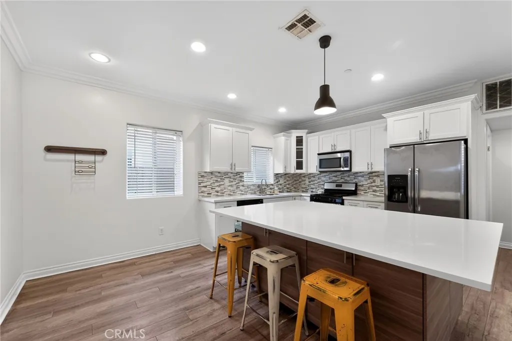 Recently constructed in 2015 and thoughtfully designed for modern living, this spacious 4-bedroom, 4-bath home in North Hollywood offers approximately 1,992 square feet of well-appointed living space and a functional two-story layout. The open-concept main living area is bright and inviting, featuring wide-plank wood flooring and recessed lighting throughout. The expansive eat-in kitchen is ideal for entertaining, showcasing custom cabinetry, quartz countertops, stainless steel appliances, and a large center island perfect for casual dining and gathering. A bedroom and full bath on the main level provide flexibility for guests, extended family, or a home office. Upstairs, three additional bedrooms each feature en-suite bathrooms, with two offering private balconies that create seamless indoor-outdoor living. Additional highlights include custom tile bathrooms, a convenient laundry closet near the kitchen, central air and heat, and an attached one-car garage with additional driveway parking. Ideally located near the new NoHo West development, the NoHo Arts District, and a variety of dining and shopping options including Trader Joes and Ralphs, this home also offers easy access to nearby parks, Burbank Airport, Metro transit, and the 170 and 101 freeways, making it an exceptional opportunity to enjoy comfort, convenience, and modern style in the heart of North Hollywood.