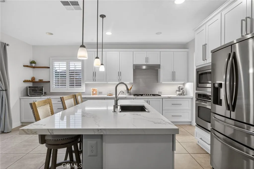 Tucked at the end of a quiet cul-de-sac in the highly sought-after Morgan Hill community, this beautifully upgraded POOL home offers the ideal blend of comfort, functionality, and resort-style living. With a rare layout featuring a downstairs primary suite and an additional bedroom and bathroom on the main level, this home is designed for both convenience and flexibility. Step inside to an open, light-filled floor plan where the modern, upgraded kitchen serves as the heart of the home. Featuring white custom cabinetry, quartz countertops, a stunning backsplash, farmhouse sink, stainless steel appliances, and a large center island with bar seating, the space flows seamlessly into the dining and living areas while overlooking the backyard oasis. A walk-in pantry and built-in coffee bar/butlers area add both style and practicality. The spacious downstairs primary suite offers abundant natural light and a beautifully upgraded bathroom with dual vanities, a soaking tub, walk-in shower, and two walk-in closets. Upstairs youll find two generously sized bedrooms, a full bathroom, a versatile loft, and an additional homework station. Designed for entertaining, the backyard is a private retreat featuring a sparkling pool and spa with waterfall features, multiple seating areas, lush landscaping, and a spacious grassy yard. The large cul-de-sac lot offers both privacy and room to enjoy outdoor living year-round. The home also features owner-paid solar for energy efficiency and long-term savings. Enjoy Morgan Hill's resort-style amenities, including clubhouse, pool and spa, fitness cent