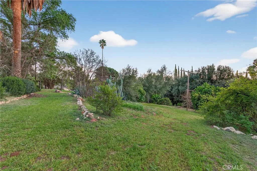A single-story ranch-style estate nestled on 1.4 acres of sprawling gardenscapeyour own private park in South Redlands. Enjoy stunning sunset and mountain views with a direct sightline to the Redlands R. A private road leads to a gated circular driveway that, along with two garages and an RV space, significantly expands parking. The house has been newly painted! Inside, find warm wood tones and spacious living areas that flow seamlessly. The kitchen is equipped with ample cabinet space and high-end Viking stainless steel appliances, including a professional-grade six-burner stove and a refrigerator. Your primary bedroom features an ensuite bath and patio access via a sliding door. Includes a recently installed high-efficiency HVAC system and solar panels for significant energy savings! Whats more, the home is wired for a generator (generator included at buyers request), which can power the fridge, lights, and outlets in case of an outage. In the peace and solitude of your private sanctuary, discover an organic orchard of fruit trees, including six grapefruit trees, navel & valencia oranges, blood orange, meyer lemon, key lime, kumquat, Santa Ana plum, nectoplum, Double Delight nectarine, Red Baron peach, pomegranate, pineapple guava, and quince. Your personal garden also boasts culinary herbs and numerous planting beds and terraces. The backyard offers even more places to relax and unwind throughout the season, whether you want to cozy up around the fire pit or under the misting system, find zen-like tranquility by the koi pond, or cannonball into a large in-ground pool. Se
