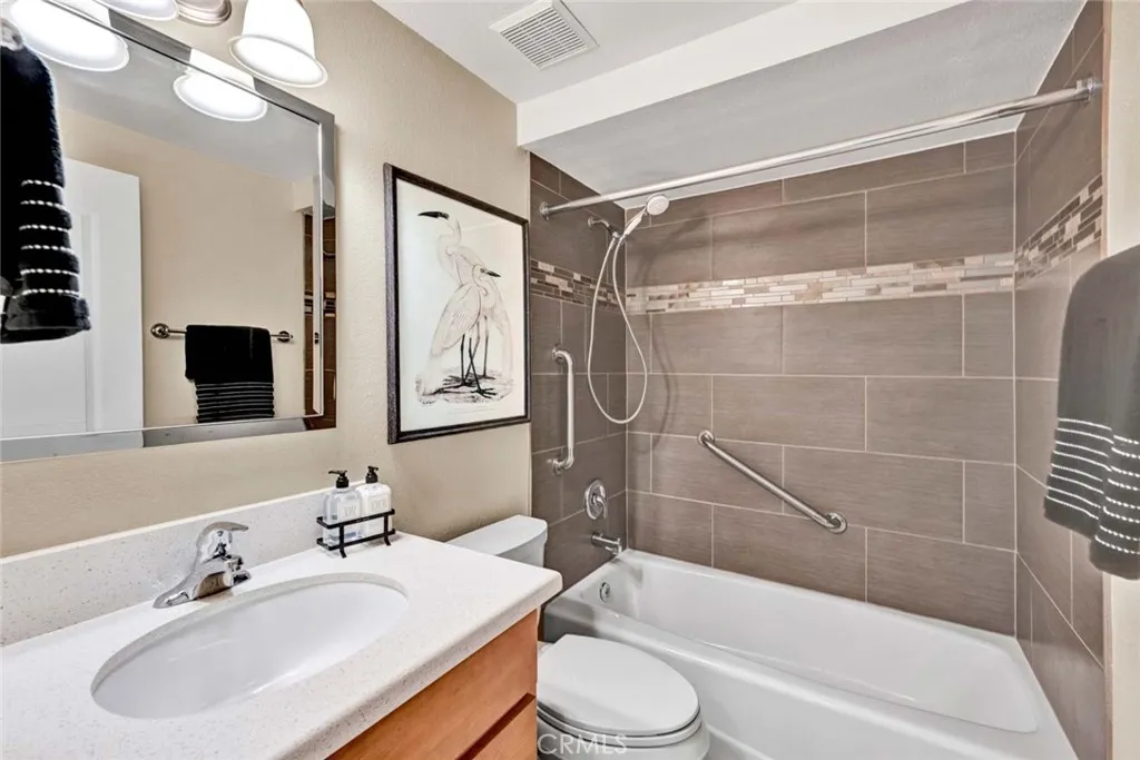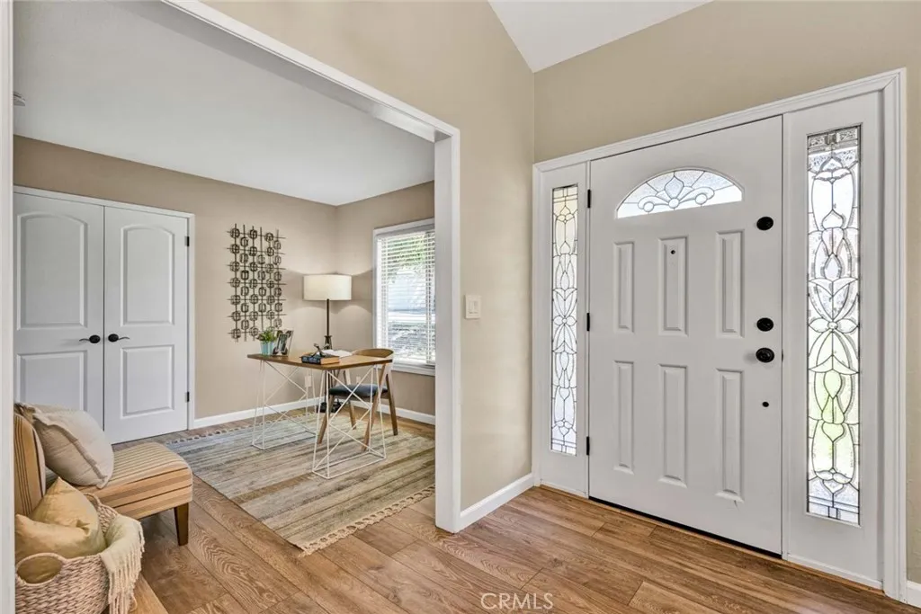 Tastefully updated and lovingly maintained, this 3 bedroom, 2 bathroom single story end unit home in the Springhurst townhomes may be the one you've been waiting for! The mood is subtle elegance from the 6 panel front door trimmed with leaded glass windows that leads to a living room flooded with natural light. The living room features a cathedral beamed ceiling, marble trimmed fireplace, recessed lighting, and laminate floors. It flows to the dining room and remodeled kitchen, with a breakfast bar, walk in pantry, granite counters, loads of cabinets, a gas stovetop, microwave, dishwasher, refrigerator, recessed lighting, and a buffet with additional storage that extends the length of the wall. Sliding doors exit to the main patio space, with planters to exercise your green thumb. The doors of the 3rd bedroom have been removed to form an alcove from the living room, perfect for an office, toy room or music area. The full bathroom has been beautifully remodeled. The primary suite is a comfortable size and boasts a large shower, a vanity area, a spacious walk-in closet, and direct access to the garage where the laundry facilities are. The primary suite and remaining bedroom open to a second patio. The 2-car garage has an epoxy floor, built in cabinetry, and a pull down ladder to the attic storage. Other features include central air conditioning, dual paned windows and a newer water heater. Springhurst HOA offers a pool, spa, clubhouse, RV parking and a spacious green park on a bluff.