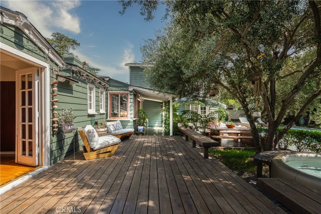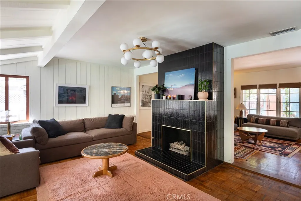 Tucked away on one of the most beautiful, tree-lined streets in the highly sought-after Toluca Woods neighborhood, 5108 Strohm Avenue is a charming English cottagestyle residence offering warmth, privacy, and timeless appeal. The ivy-draped exterior, warm faade, and manicured front lawn shaded by mature trees create an inviting first impression and immediately set the tone for this peaceful retreat. Inside, the home blends classic character with a fresh take on modern California living. French windows and doors fill the interiors with abundant natural light, while richly toned parquet wood floors add warmth and texture throughout the main living areas. The thoughtful layout strikes a balance between comfort and style, making the home equally suited for everyday living and entertaining. Whether enjoying a quiet evening by the fireplace, sharing meals with friends, or gathering for special occasions, the living spaces feel welcoming and effortless. The kitchen serves as the true heart of the home, featuring golden-toned fixtures, timber cabinetry, and timber ceilings that echo mid-century influence, paired with dramatic designer walls for contrast. Generous counter space, a conversational layout, and high-end appliances make this kitchen ideal for gourmet cooking, casual meals, or entertaining. Just off the kitchen, the family room offers a relaxed yet refined setting anchored by a statement fireplace with a striking black surroundperfect for movie nights, game days, or unwinding at the end of the day. Step outside to a private backyard oasis designed for year-round enjoyment