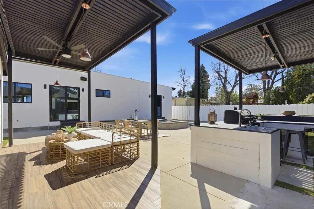 Resort-Style Living in Woodland Hills Welcome to this beautiful single-story home offering approximately 3,300 sq ft of indoor-outdoor living in one of Woodland Hills most desirable neighborhoods. Offering exceptional value for the size, amenities, and location, this property presents a rare opportunity in todays market. Designed for both everyday comfort and entertaining, the home blends modern design with a resort-style setting. A private gated entry and circular driveway provide a welcoming arrival and ample parking, including space for an RV or boat. Inside, the spacious layout is filled with natural light and offers a seamless flow between the living room, dining area, and chefs kitchen. The kitchen features custom cabinetry, quartz countertops, a large center island with breakfast bar, and high-end appliances, making it ideal for both daily living and hosting. The home offers 5 bedrooms and 4 bathrooms, including a generous primary suite with a large walk-in closet and spacious bathroom with dual vanities and a walk-in shower. Step outside to the private backyard designed for entertaining, featuring a pool, spa, outdoor kitchen, and covered patioperfect for gatherings or relaxing outdoors. A detached guest house adds flexibility for guests, extended family, a home office, gym, or potential rental income. Additional highlights include smart home features, security cameras, built-in speakers, custom window treatments, and central A/C with individual climate control for added efficiency. Located near shopping, dining, and top-rated schools, this property offers a combina