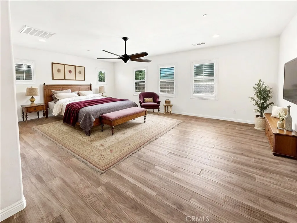 Welcome to 2025 James Gaynor, a sprawling single-story estate nestled on a prime corner lot in the prestigious gated community of Shady Grove. This meticulously maintained home offers over 3,200 sq ft of luxurious living space, featuring 4 spacious bedrooms, 3.5 bathrooms, formal living and dining rooms, a butlers pantry, and a stunning gourmet kitchen with custom European cabinetry, granite countertops, stainless steel appliances including a double oven, and an oversized island with stainless steel sink and wall-to-wall cabinets for abundant storage. The open-concept layout flows seamlessly into a large family room with a gas fireplace, custom precast surround, wood shutters, and elegant ceramic tile flooring throughout. The expansive primary suite feels like a private retreat, with space for a sitting area or office, and a spa-like bathroom featuring polished marble floors, a limestone-clad walk-in shower with bench seating, a separate soaking tub, and dual sinks with a built-in vanity. All secondary bedrooms offer ceiling fans, plush carpet, and custom window coverings. The home also boasts a large laundry room with storage cabinets and a sink, as well as a fully finished 3-car garage with insulated doors and overhead storage racks. Step outside into your private backyard oasisperfect for entertainingwith a sparkling pebble tech pool, drought-tolerant landscaping, and a concrete walkway leading from the driveway to the rear yard. This home also includes a fully owned, PAID OFF SOLAR ENERGY SYSTEMoffering significant monthly utility savings and eco-friendly living with no