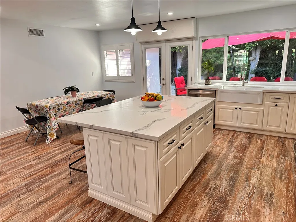 Experience elevated California living in this exquisitely upgraded 3-bedroom, 2-bath residence, where soaring 13-foot ceilings and an expansive open-concept design create a dramatic yet inviting atmosphere. The chef-inspired kitchen is outfitted with premium LG appliances and a substantial center island with ample storage, while elegant double doors open seamlessly to a private backyard, perfect for refined indoor-outdoor entertaining. Inside, oversized dual-pane energy-efficient windows flood the home with natural light, complementing sleek, high-performance flooring that offers both sophistication and durability throughout. Major 2022 upgradesincluding electrical, plumbing, roof, a Sunrun Solar Roof, two Tesla Powerwalls, and a Tesla chargerprovide modern infrastructure beneath timeless design. The home is further enhanced by a fully integrated solar system for energy independence and long-term savings, along with premium features such as an A.O. Smith whole-home water softening system, Noritz tankless water heater, Goodman high-efficiency A/C, Ring security system, automatic irrigation, and custom wood shutters throughout. The private owners retreat offers an expansive primary suite with a large closet, a spa-inspired travertine shower, and direct backyard access for quiet morning or evening escapes. Completing the property is a fully finished, insulated, and air-conditioned garage with private attic storage, a built-in weight training system, and a generously sized interior laundry room, making this home as functional as it is luxurious.
