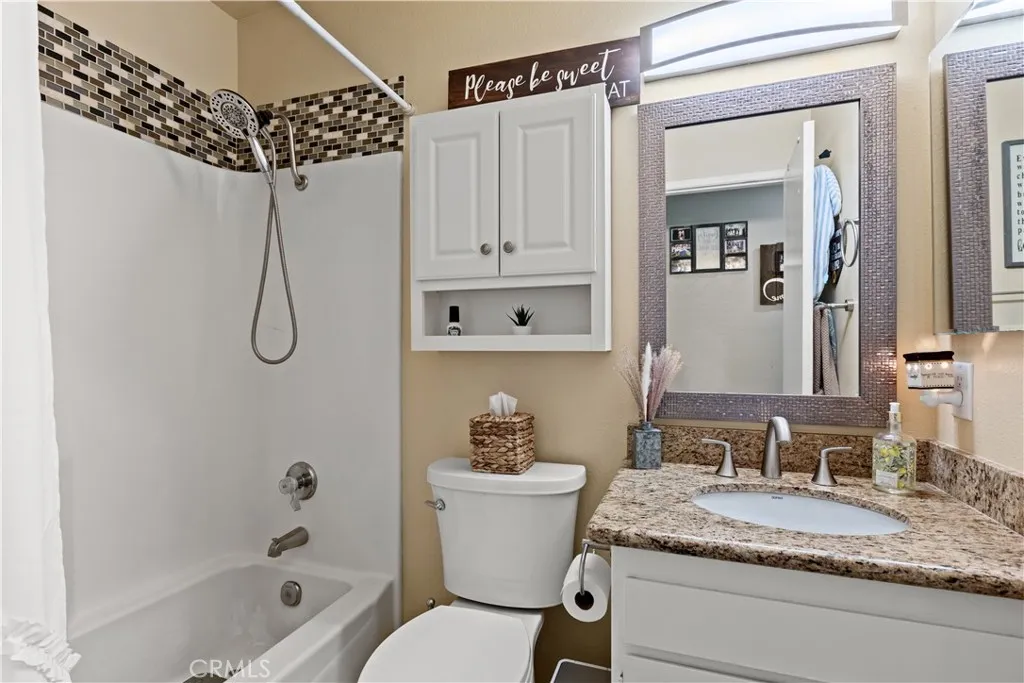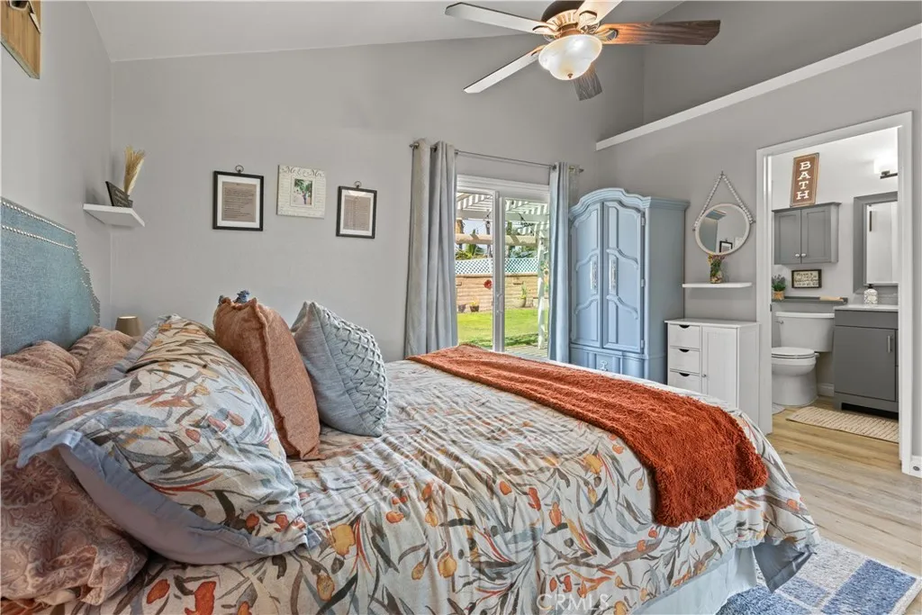 Welcome to this charming single story 3 bedroom, 2 bath single-story home in the highly desirable Oso Valley Greenbelt Community in Mission Viejo. You will be greeted by a large, serene front courtyard that leads you right into this perfectly updated and well-maintained home featuring cathedral ceilings and an inviting, light-filled interior. Enter into the spacious living room highlighted by soaring ceilings and a designer stone fireplace with mantle, creating a warm and elegant focal point for the home. Most of the home features beautiful laminate flooring, while the kitchen and bathrooms offer durable tile floors. The kitchen is bright and cheery, featuring white cabinets, stainless steel appliances, and a bay window in the eat-in dining area that fills the space with natural light while overlooking the expansive back patio and yard, perfect for indoor-outdoor living and entertaining. The primary bedroom offers high ceilings, a wall of mirrored closets, and a sliding glass door that opens directly to the backyard patio, creating a peaceful retreat. Both bathrooms are tastefully updated, with the primary bath featuring a walk-in shower. Additional highlights include new roof in 2024, dual-pane windows, recessed lighting, textured ceilings, an inside laundry area, and a roll-up garage door with windows. Enjoy the expansive back patio and yard, ideal for relaxing, entertaining, or enjoying Southern Californias beautiful weather. Conveniently located across the street from Pavion Park, this home also includes membership to Lake Mission Viejo, offering year-round activities i