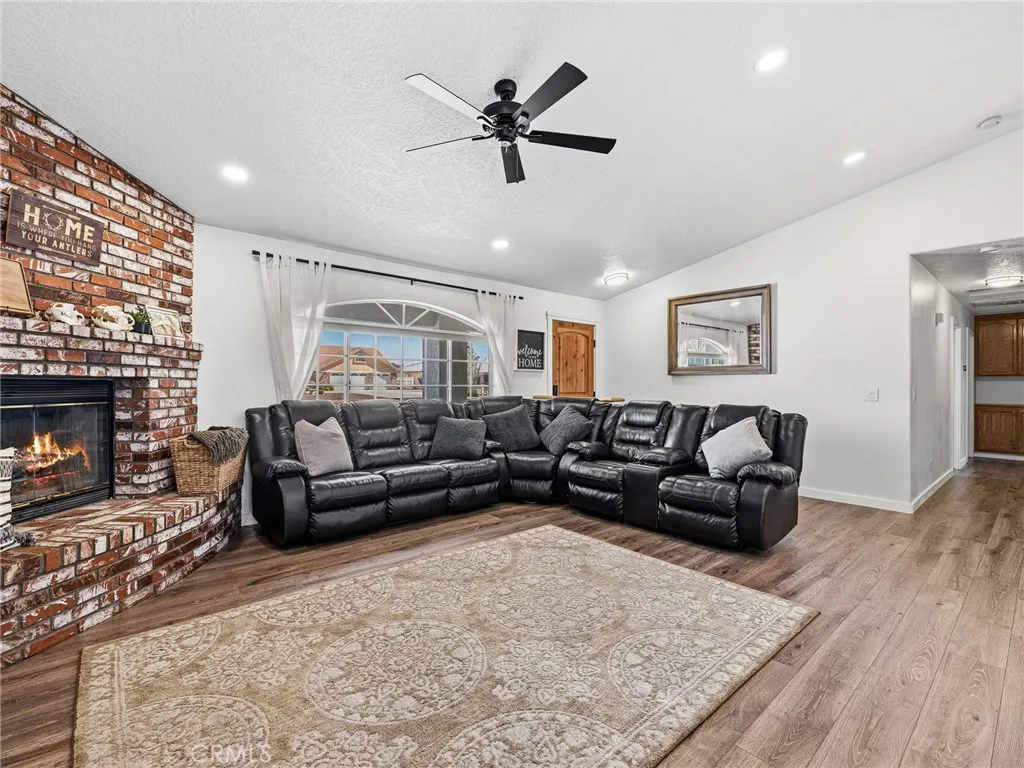 Beautiful dualprimary suite home in the desirable Spring Valley Lake Equestrian Estates, situated on a spacious half-acre lot with direct bridal path access and full HOA amenities. This freshly remodeled single-story home offers 4 bedrooms and 3 bathrooms and is just a short walk from the communitys equestrian facilities, including arenas, trails, and boarding. Inside, the open and modern layout features soaring vaulted ceilings, new flooring, Craftsman-style trim, and sleek flat black fixtures throughout. The updated kitchen showcases white quartz countertops, stainless steel appliances, dual pantries for excellent storage, and scenic mountain views. The flexible floor plan includes two large primary suitesperfect for multi-generational living, guests, or added privacyalong with two additional bedrooms and three full bathrooms. A spacious three-car garage provides plenty of room for vehicles, storage, or hobbies. Outside, the expansive lot offers a wide driveway with abundant parking, low-maintenance landscaping, and a private backyard enclosed by white vinyl fencing. Outdoor features include an oversized RV gate with direct access to the bridal path for convenient trail riding, two oversized storage sheds for tack or equipment, a covered patio ideal for relaxing or entertaining, and a mini orchard on automatic irrigation with nine fruit trees. Residents enjoy full access to the amenities of the Spring Valley Lake Association, including boating, water skiing, and wakeboarding on the private 200-acre lake with marina, fuel dock, and boat slips. Additional community features