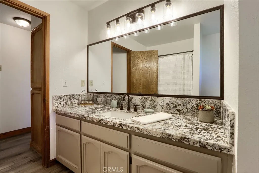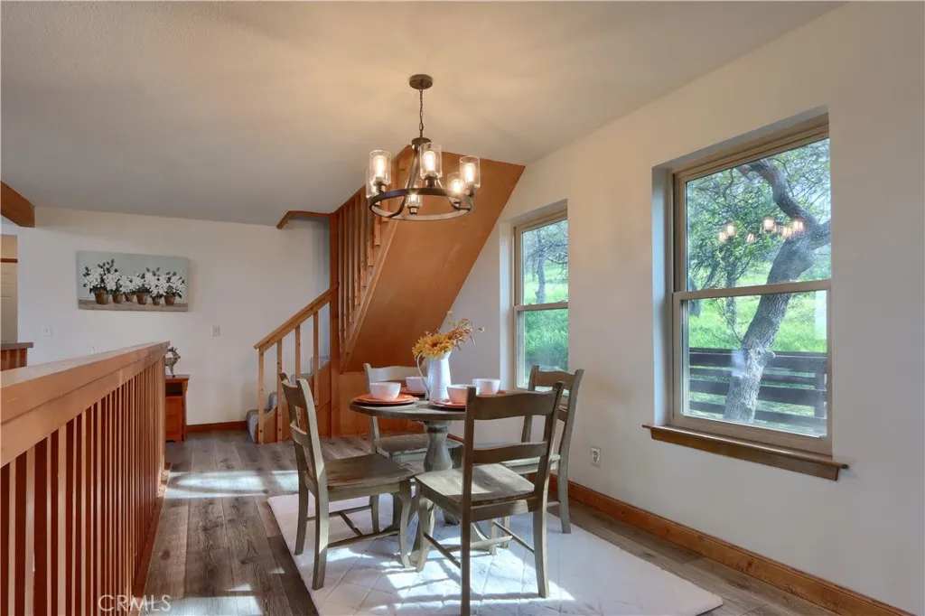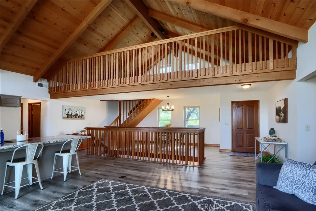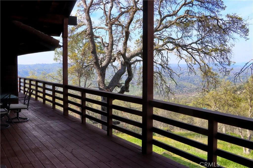 Wake up to breathtaking Sierra Nevada views from this stunning mountain retreat perched on 7.73 private acres, where you can relax, entertain, or unwind on the expansive wrap-around deck while enjoying spectacular sunsets & unforgettable nights under peaceful mountain skies. The property backs up to a 300-acre recreational reserve, offering exceptional privacy.This stunning lodge-style home offers the perfect blend of privacy, nature, and community amenities, and is conveniently located close to Yosemite and several local lakes for summer boating & recreation. With 2,975+/- sq ft of living space, this spacious 4-bedroom, 3-bath home plus loft features an open floor plan designed to capture natural light and panoramic mountain views. The expansive wrap-around covered deck is ideal for entertaining, sunset watching, or simply relaxing while overlooking the Sierra Mountain Range.Inside, the home has been beautifully refreshed with new luxury laminate wood-style flooring, new carpet, updated lighting fixtures, and modernized bathrooms, including double sinks in the main guest bathroom. The kitchen features granite countertops, custom cabinetry, a walk-in pantry, bar seating, and a new downdraft cooktop, all open to the main living area and deck through a convenient pass-through window perfect for indoor/outdoor entertaining.The vaulted ceilings & large picture windows in the living room create a bright and welcoming space. The loft overlooks the main living area and offers additional space for an office, reading nook, or game room.The spacious primary suite includes new tile fl