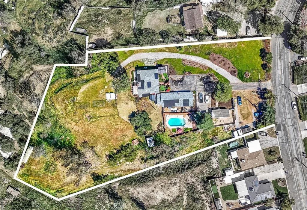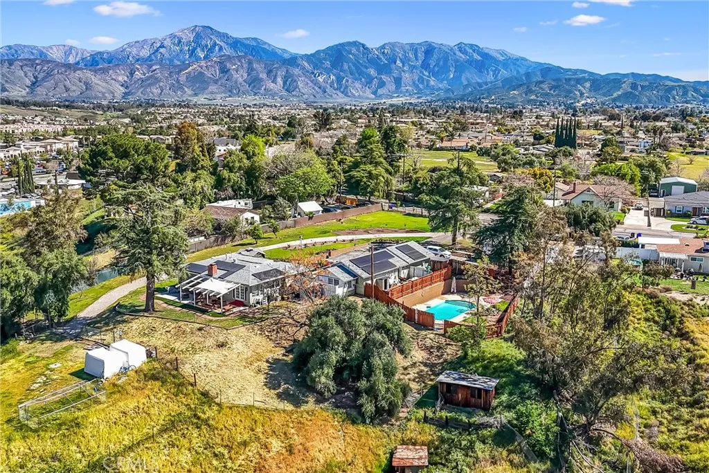 Exceptional Bluff-Top Opportunity in Yucaipa 2.5 Acres with Multiple Residences & Development Potential! Rare opportunity to own approximately 2.5 acres of prime view property perched on the bluff in the City of Yucaipa with stunning views, multiple residences, owned solar, and expansive land, this property presents a rare opportunity for investors, developers, or buyers seeking space, income potential, or multi-generational living, and long-term potential in one of Yucaipas most desirable bluff locations. This unique property features four doors (units) across three separate structures, per seller. Including a two-bedroom, one-bath main residence of approximately 1300 square feet, a two-bedroom, one-bath apartment, and two studio apartments, offering incredible versatility for multi-generational living, rental income, or future development potential. The main residence features a beautifully remodeled 2-bedroom, 1-bath turnkey home with beamed ceilings and an open-concept floor plan, creating a bright and inviting living space. The kitchen has been tastefully updated with granite and quartz countertops, complemented by new vinyl flooring throughout the structures. Additional highlights include a cozy fireplace, remodeled bath stainless steel appliances, kitchen island, large pantry, laundry closet, a bonus room/office with built-in desk and shelving, vinyl flooring throughout, and panoramic views. Enjoy beautiful sunsets and sunrise views from both the front and rear patios or the with a charming gazebo area perfect for relaxing or entertaining. The second detached buildi