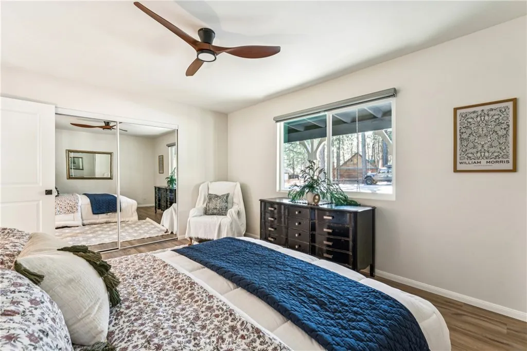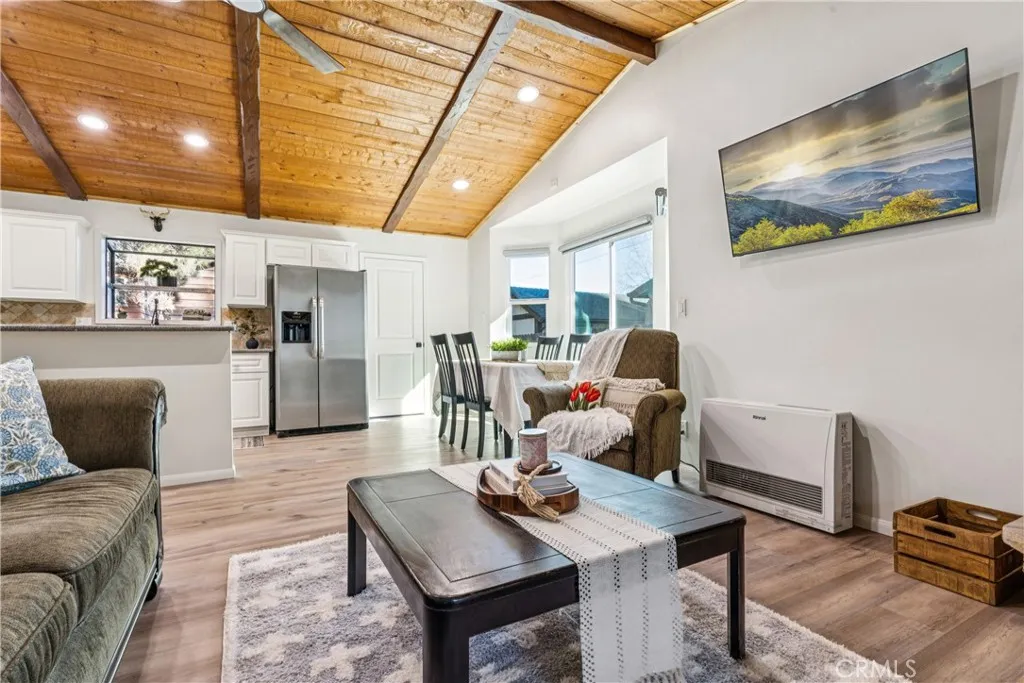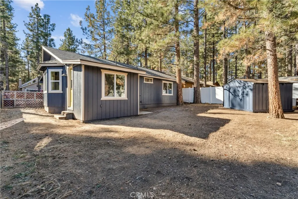 Welcome to this beautifully remodeled mountain retreat in the heart of Big Bear City. This charming 2-bedroom, 1-bath cabin has been thoughtfully updated from top to bottom, blending modern comfort with cozy alpine style. Featuring approximately 880 square feet, every inch of this home has been refreshed to feel warm, inviting, and move-in ready. Enjoy peace of mind with a brand-new roof, new windows, new flooring, fresh interior and exterior paint, updated drywall, and an efficient natural gas heating system. The open-concept living area showcases vaulted wood-beam ceilings, a stunning stone fireplace, and abundant natural light, creating the perfect space to relax after a day on the mountain. The updated kitchen offers white cabinetry, granite countertops, stainless steel appliances, and a stylish tile backsplashideal for entertaining or everyday living. The remodeled bathroom features modern fixtures, a custom vanity, and a glass-enclosed travertine tile shower for a spa-like feel. Both bedrooms are bright and comfortable, providing a peaceful place to unwind. Outside, the spacious, tree-lined lot offers room to enjoy the mountain air, add outdoor seating, or create your own private retreat. The covered front porch and charming exterior complete the storybook cabin appeal. Located close to skiing, hiking, shopping, dining, and Big Bear Lake, this turnkey home is perfect as a full-time residence, weekend getaway, or short-term rental investment. Dont miss this rare opportunity to own a fully remodeled Big Bear cabinjust bring your bags and start enjoying the mountain life