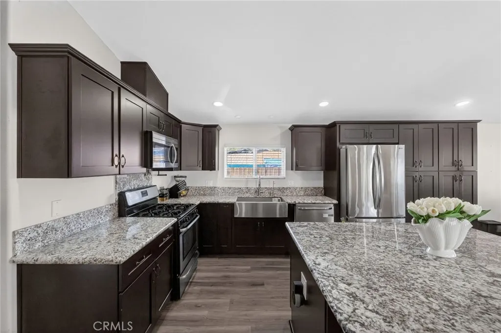 Welcome to this charming and well-maintained manufactured home, featuring owned and paid-off solar. Located in the desirable The Farm Community, this home offers comfort, modern upgrades, and a peaceful setting with convenient access to the city. Inside, you'll find wood-laminate flooring throughout, dual-pane windows, recessed lighting, and a tankless water heater. The home also includes integrated Ethernet in every room, a smart garage door opener, and smart lighting in the primary bedroom and backyard. The upgraded kitchen features granite countertops, updated cabinetry, a farmhouse apron stainless steel sink, stainless steel appliances, built-in microwave, and reverse osmosis drinking water at the sink. Both bathrooms have been tastefully updated with granite countertops, upgraded vanities, modern fixtures, glass shower doors, updated lighting, and lighted mirrors. The floor plan offers three spacious bedrooms, two bathrooms, and a bright great room that flows seamlessly into the dining area and kitchen, creating an inviting open-concept living space. A large indoor laundry room with exterior access adds everyday convenience. The exterior features a private gated entry, detached two-car garage, covered patio, in-ground spa, and mature landscaping, providing plenty of space to relax or entertain. Residents of The Farm Community enjoy country-style living with city convenience, easy access to the Interstate 15 and Interstate 215, a low tax rate, and outstanding amenities including citrus groves, an amphitheater, pools, spas, a catch-and-release pond, sports courts, RV sto
