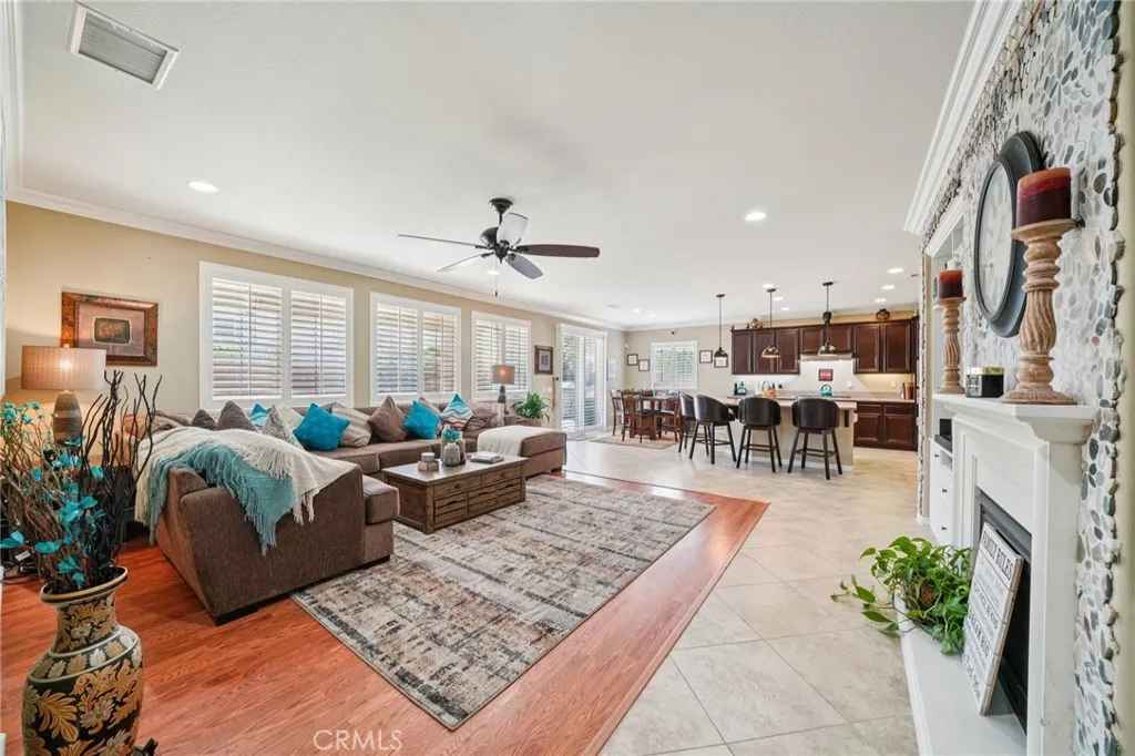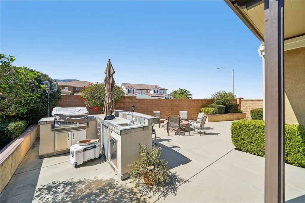 Welcome to this stunning 4-bedroom, 4.5-bathroom two-story home located in the prestigious guard-gated community of The Retreat. Designed with comfort and elegance in mind, this home features an open and spacious floor plan with high ceilings, recessed lighting, crown molding, plantation shutters, and a neutral paint scheme throughout. Upon entry, you are greeted by a formal living room and formal dining room, perfect for hosting gatherings. The heart of the home is the expansive great room that flows seamlessly into the gourmet kitchen, which is equipped with a large center island, dark wood cabinetry, ample counter space, and plenty of storage. The thoughtfully designed layout includes one bedroom with a full bathroom on the main floor, along with a convenient half bathroom for guests. Upstairs, youll find the remaining bedrooms including the luxurious primary suite with retreat area as well as a spa-like ensuite bathroom featuring dual vanities, a soaking tub, and a separate shower. Two more bedrooms as well as a versatile bonus Loft space, and 2 additional bathrooms complete the 2nd floor. Also, step outside onto the large private balcony and enjoy peaceful mountain views. The backyard is designed for both relaxation and entertaining with a covered patio, concrete and grassy areas, and a built-in BBQ bar, creating the perfect outdoor living space! Also there is a 3-Car Garage and the refrigerator, mini fridge, washer, dryer, BBQ, security system, smart thermostat, smart doorbell, and smart lock are all included in the sale of the home! Residents of The Retreat enjoy res