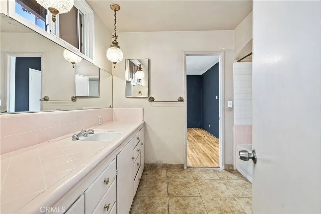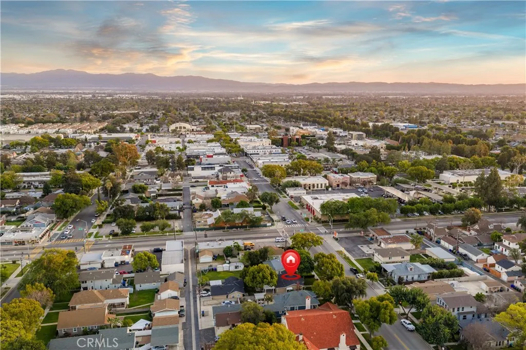 Located within walking distance to historic Downtown Upland and currently benefiting from the Mills Act, this two homes on one lot property at 548 N. 2nd Ave. and 548 1/2 N. 2nd Ave. features a front home with 3 bd, 2 ba, approx 1,488 sq ft plus a separate rear home/ADU with 1 bd, 1 ba, approx 683 sq ft, offering flexibility for rental income, guest house, or multi generational living. Each residence includes its own private garage, separate electric meter and gas, and individual laundry. The front Craftsman style home features a covered porch with stone accented columns, horizontal siding, and multi pane windows. The front yard includes mature shade trees, landscaped beds, lawn area, and a concrete walkway with a decorative garden arch framing the entry path. A long driveway along the side provides access to the rear of the property. The spacious living/family room offers large front facing windows, an original fireplace with wood mantel, and a wood paneled accent wall, plus a connected room ideal for a dining room/office. The layout flows into the kitchen and eating area creating a central living space. The kitchen features wood cabinetry, tile counters/backsplash, and a peninsula with a built in gas cooktop and vent hood. Laminate plank flooring in a parquet pattern extends through the kitchen and dining area. The dining space includes sliding glass doors to the side patio. Stainless steel refrigerator and freestanding gas range are included, with a nearby laundry room and storage. The hallway leads to the primary bedroom with hardwood flooring, corner windows, and an en