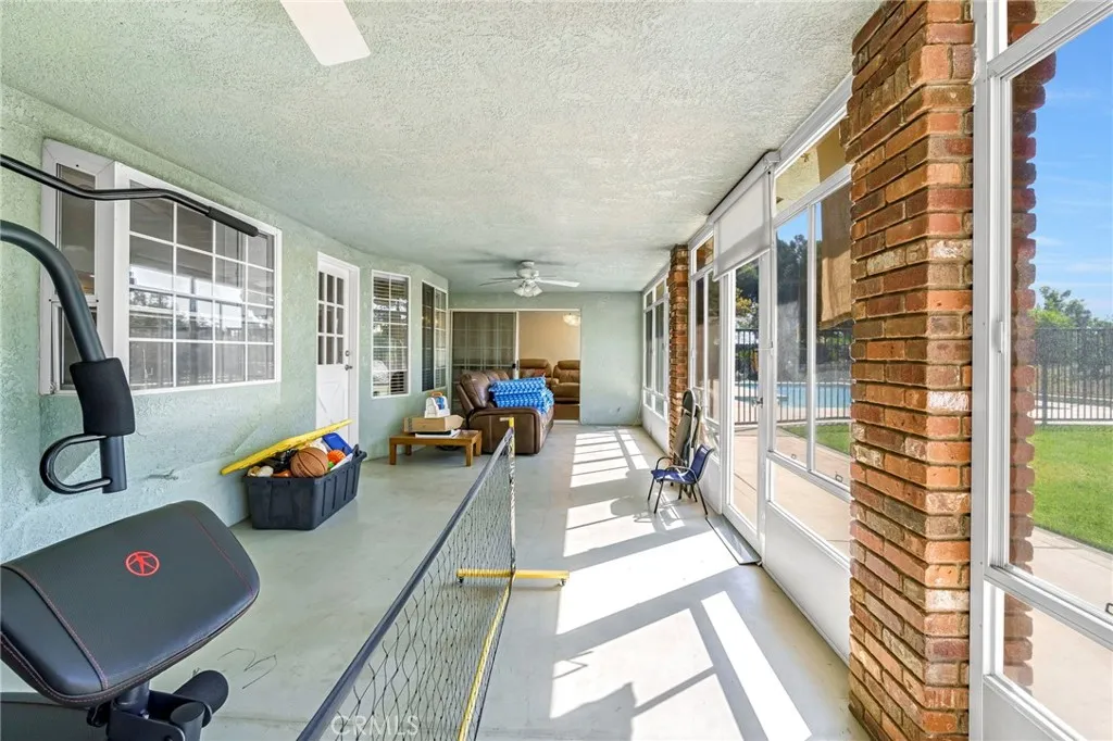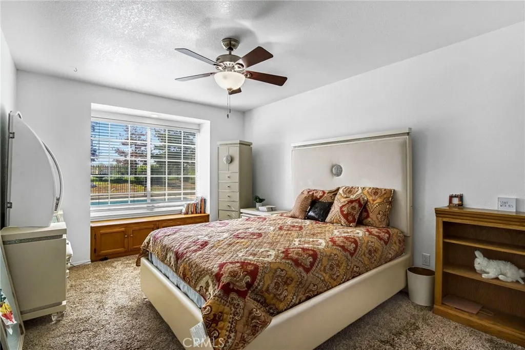 Located at 2436 Trevor Court in Madera, this well-maintained one-story residence offers approximately 3,383 square feet of living space with 5 bedrooms and 3 bathrooms, situated on a large lot with convenient access to nearby shopping, dining, and major roadways. The home features a spacious and functional floor plan with multiple living areas, including a formal living room, formal dining area, and a family room with a fireplace. The main living space showcases vaulted and beamed ceilings, creating an open and expansive feel. A sunroom provides additional flexible living space with natural light. The kitchen is designed for both everyday use and entertaining, featuring granite and travertine countertops, shaker-style cabinetry, stainless steel appliances, double ovens, a breakfast bar, peninsula, skylight, and a walk-in pantry. An informal dining area connects seamlessly to the kitchen and living spaces. The layout includes one isolated bedroom and bathroom with a private entrance, offering flexible use options. Additional interior features include multiple walk-in closets, a dedicated laundry/utility room with built-in storage and sink, two HVAC systems, two water heaters, a whole-house water filtration system, and leased solar. Exterior highlights include a tiled roof, 3-car garage with built-in storage and overhead racks, and a fenced backyard with a pool secured by safety fencing. The property backs to the Fresno River, providing added privacy and open views. Outdoor features also include a patio area, raised garden beds, and a low-maintenance yard layout. Additional f