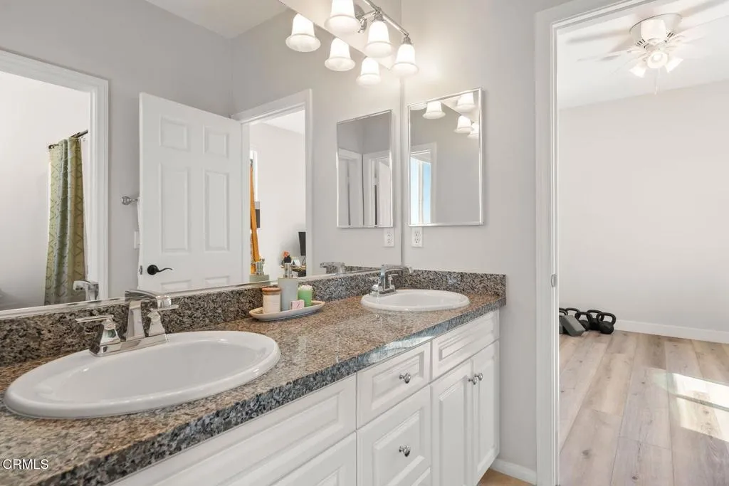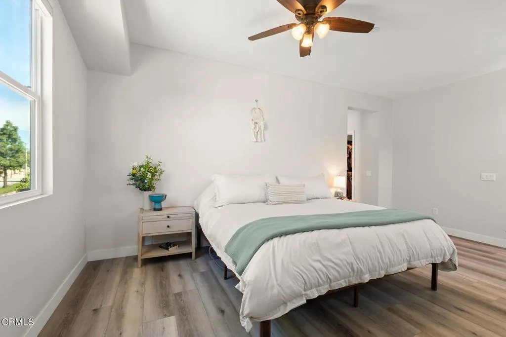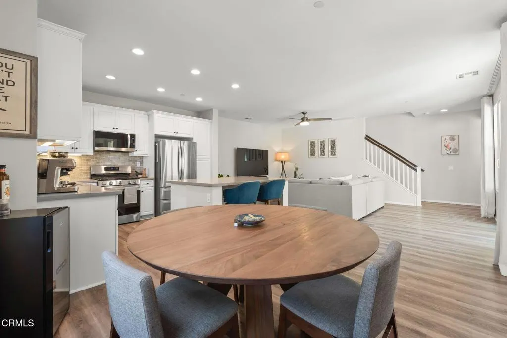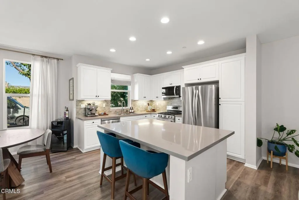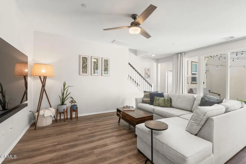 Modern East Ventura living at its finest! Built in 2018, this beautifully maintained 4 bedroom, 3 bathroom home offers 2,189 sq ft of bright, open living space designed for comfort and entertaining.Step inside to a light-filled open concept layout featuring newer flooring, recessed lighting, and a spacious living area that flows seamlessly into the dining space and chef's kitchen. The stunning kitchen showcases white shaker cabinetry, quartz countertops, INCLUDED stainless steel appliances, Water Drop Tankless Reverse Osmosis water filtration system, a stylish tile backsplash, and a large center island perfect for gathering.A convenient downstairs bedroom and full bath provide ideal flexibility for guests, multigenerational living, or a home office.Upstairs, the expansive primary suite offers a peaceful retreat with a walk-in closet and a spa-inspired en suite bathroom featuring dual vanities and generous storage. Two additional bedrooms share a Jack-and-Jill bathroom, and a dedicated laundry room with storage adds everyday convenience.The backyard is designed for relaxing and entertaining with low-maintenance turf, a beautiful wood deck patio with cafe lighting, and a private spa -- perfect for enjoying Ventura's coastal evenings.Additional highlights include an epoxied garage with built-in storage cabinets, exterior Ring system, Nest Thermostat, and SpringWell Water filtration System. Located in a desirable East Ventura neighborhood with nearby parks, a dog park, and scenic walking paths, this home offers the perfect blend of modern living and outdoor lifestyle.No HOA. No