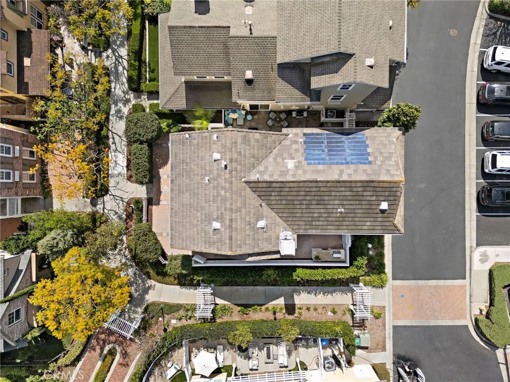 Located in a charming Ladera Ranch neighborhood and set along a tranquil paseo walkway with greenbelt views, this beautifully maintained 4-bedroom, 2.5-bath Capecod inspired home offers approximately 2,200 square feet of comfortable living space on a desirable private corner lot. The inviting exterior showcases fresh paint, a classic white picket fence, and professionally landscaped front yard, while the side yard provides a great setting for entertaining with a built-in BBQ island and space to relax while enjoying the surrounding greenery. Inside, the home features a functional and open floor plan highlighted by hardwood flooring throughout the entire first floor, staircase, and upstairs hallway, recessed lighting, custom paint, and designer window coverings. The spacious refinished kitchen opens to the main living areas and is appointed with granite countertops with full backsplash, newer KitchenAid stainless steel appliances, and decorative lighting, creating a warm and inviting gathering space. All four bedrooms are located upstairs, including the beautifully remodeled primary suite featuring a finished walk-in closet, dual vanities, updated shower, and stylish tile flooring. The secondary bedrooms are generously sized and share an updated bath with dual sinks. Additional interior features include remodeled fireplace/mantle surround, tile flooring in bathrooms and laundry, mirrored wardrobes, and a separate laundry room. This home is also well-equipped with valuable upgrades including solar power with a new inverter, whole-house water filtration, tankless water heater,