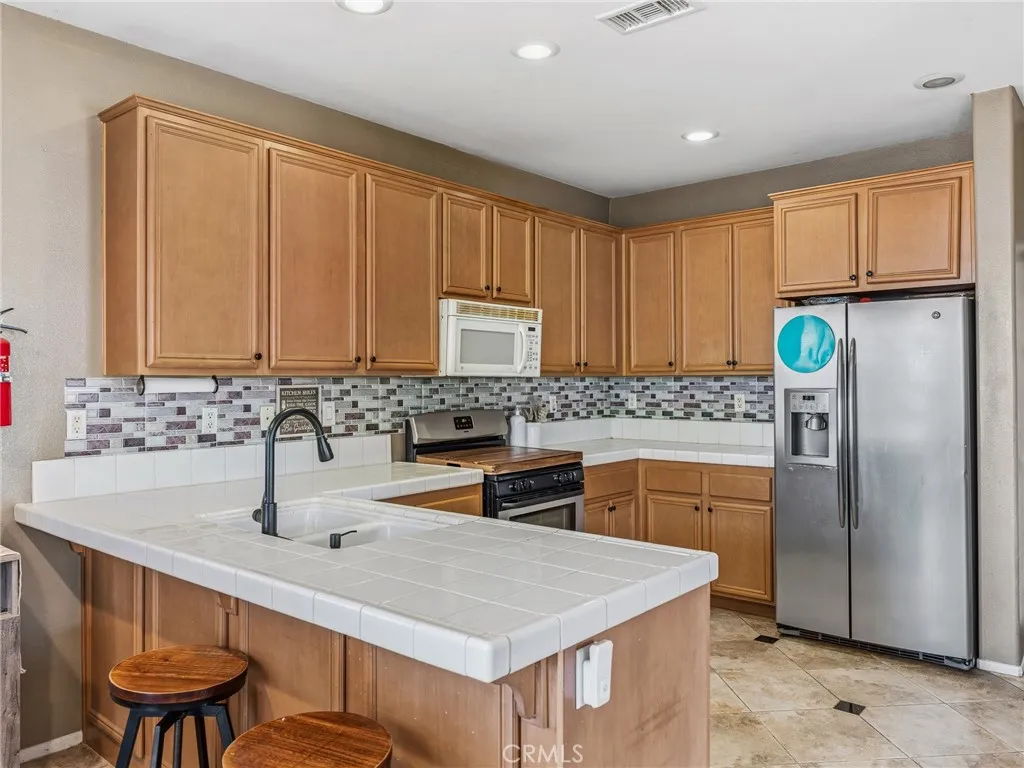 Welcome to 15126 Bluffside Lane in Victorville, where comfort, efficiency, and commuter convenience come together in one exceptional home. This spacious 4-bedroom, 3-bath residence offers approximately 1,993 square feet of thoughtfully designed living space, perfect for modern lifestyles. From the moment you step inside, youll appreciate the inviting living room featuring a cozy fireplacean ideal place to gather and unwind. The kitchen offers both functionality and charm with tile countertops, a walk-in pantry, and a stainless steel range, refrigerator included, creating a welcoming space for everyday meals and entertaining. One of the homes most valuable features is the fully paid-off solar system at closing that was just installed at the end of 2024 with a 25 year warranty, complete with 24 panels, Tesla Powerwall 3 System, integrated battery, inverter, system controller. Enjoy incredible energy savings with the current seller reporting no electric bill, giving you both peace of mind and long-term financial benefits. Additional upgrades include a new electric water heater as well as updated A/C and heating systems for year-round comfort plus smart home nest thermostat. The flexible floor plan includes a convenient downstairs bedroom and bathroom with showerperfect for guests, multigenerational living, or a private home office. Upstairs, a spacious loft offers endless possibilities as a media room, play area, or additional lounge space. The primary suite provides a relaxing retreat with a walk-in closet and an ensuite bathroom featuring double sinks, a soaking tub, and a s