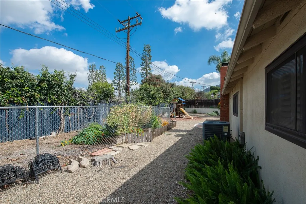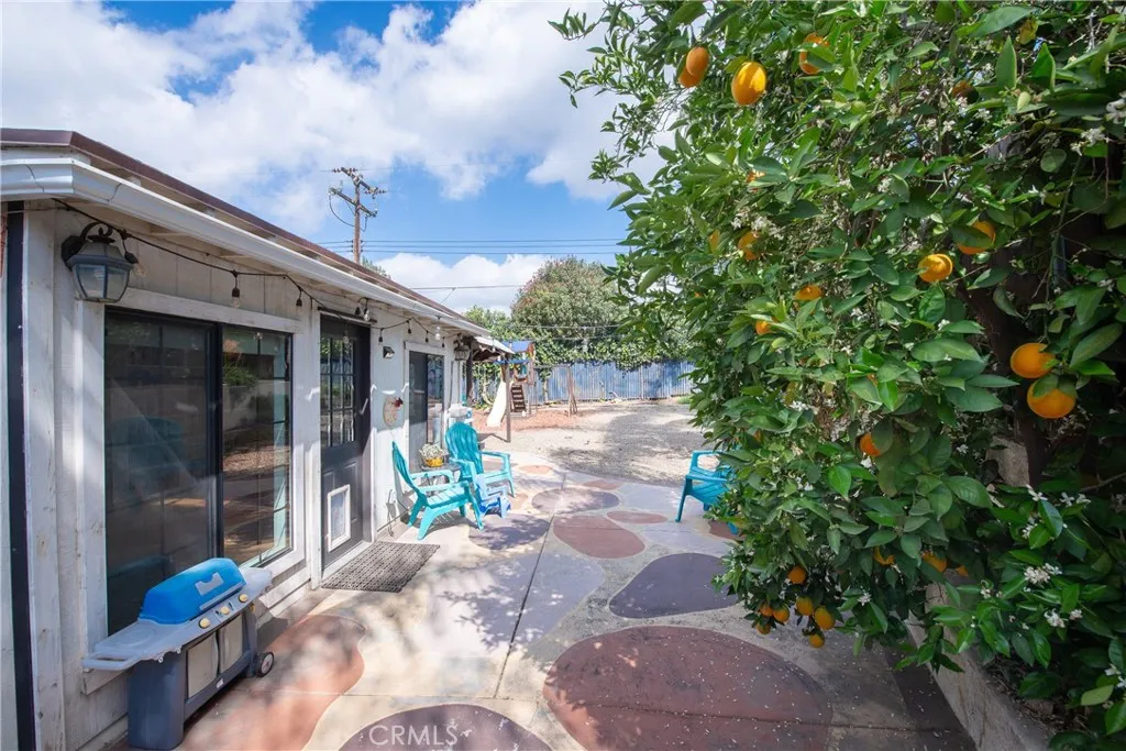 TURNKEY 3-bedroom, 2-bathroom home with owned solar in Grand Terrace, loaded with upgrades and charm! A water-wise landscaped front yard welcomes you into this beautifully maintained property. Inside, laminate flooring flows through much of the home, creating a warm and inviting atmosphere. The remodeled kitchen is a standout feature, offering white shaker cabinets with gold hardware, stylish quartz countertops, a beautiful green subway tile backsplash, upgraded sink, and stainless-steel appliances including a range with an electric oven with a 5-burner gas cooktop. The adjacent dining area provides the perfect space for everyday meals or entertaining guests. The spacious living room features a cozy fireplace for chilly evenings and French doors that open to the large backyard, creating a seamless indoor-outdoor living experience. A versatile bonus room offers flexible space ideal for a playroom, game room, home office, or hobby room. The large primary bedroom, located at the front of the home, includes two walk-in closets, a large window with plantation shutters, a ceiling fan, and an attached bathroom with a newly refinished shower and NEW tile flooring. Bedrooms two and three located across the hall feature ceiling fans and large windows with plantation shutters that overlook the backyard. The hallway bathroom includes a newly refinished bathtub/shower combination, vanity top and sink along with NEW tile flooring. Step outside to the water-wise backyard featuring orange, lemon, apricot, and grapefruit trees, plus a fenced garden area perfect for growing vegetables, and g