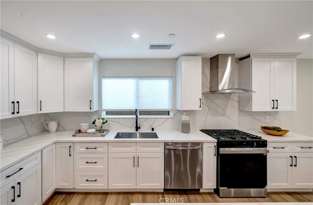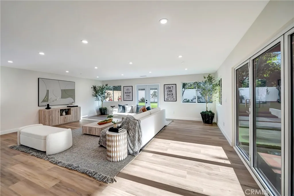 Extensively remodeled and expanded with permits. Woodland Hills residence offering approximately 2,750 sq ft of living space, including about 1,600 sq ft of newly constructed addition. All remodels and additions were completed with permits. The property also features approximately 352 sq ft of permitted patio and porch space recognized by the City but not included in the MLS square footage. Open floor plan connecting the living, dining, and kitchen areas, ideal for modern living and entertaining. The kitchen features a large quartz island, custom cabinetry, stainless steel appliances, gas range, and contemporary finishes. The spacious 4-bedroom, 2.5-bathroom layout includes a primary suite with backyard access, a walk-in closet, and a spa-style bathroom with a walk-in shower. Additional bedrooms offer comfortable space and natural light. Major upgrades include new electrical system and panel, copper plumbing and gas lines, HVAC with new ducting, roof, insulation, drywall, stucco, windows and doors, fire sprinklers, and tankless water heater. Private backyard with covered patio and grassy yard. Located near Valley Circle Blvd and Vanowen St in a quiet residential neighborhood within a desirable school district, with convenient access to Warner Center, The Village at Westfield Topanga, Westfield Topanga Mall, parks, hiking trails, the 101 Freeway, and a short drive through Topanga Canyon to Malibu beaches. Certificate of Occupancy to be delivered.