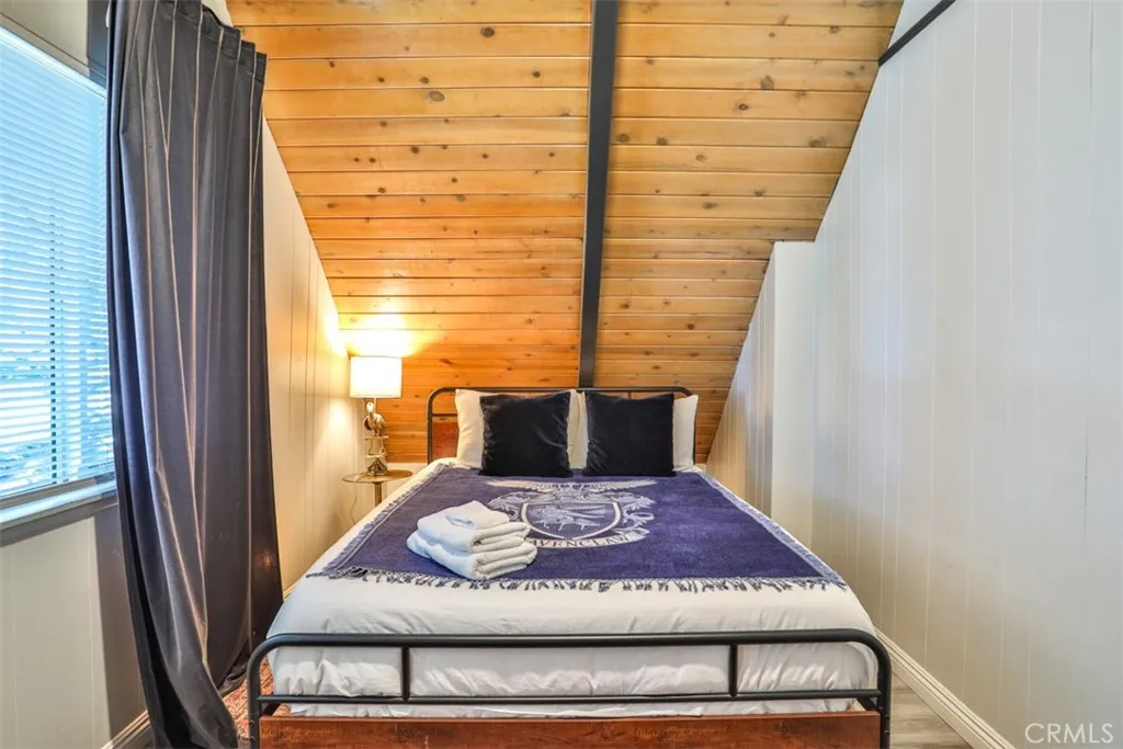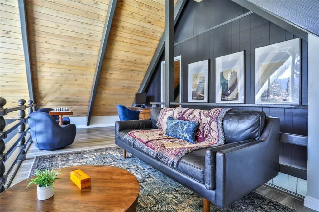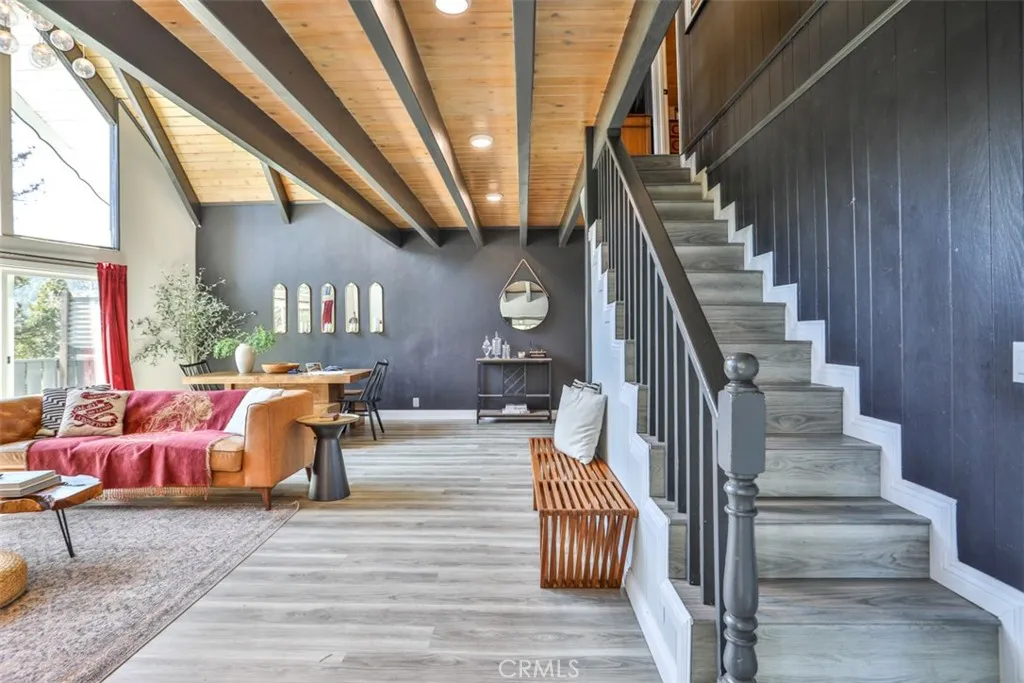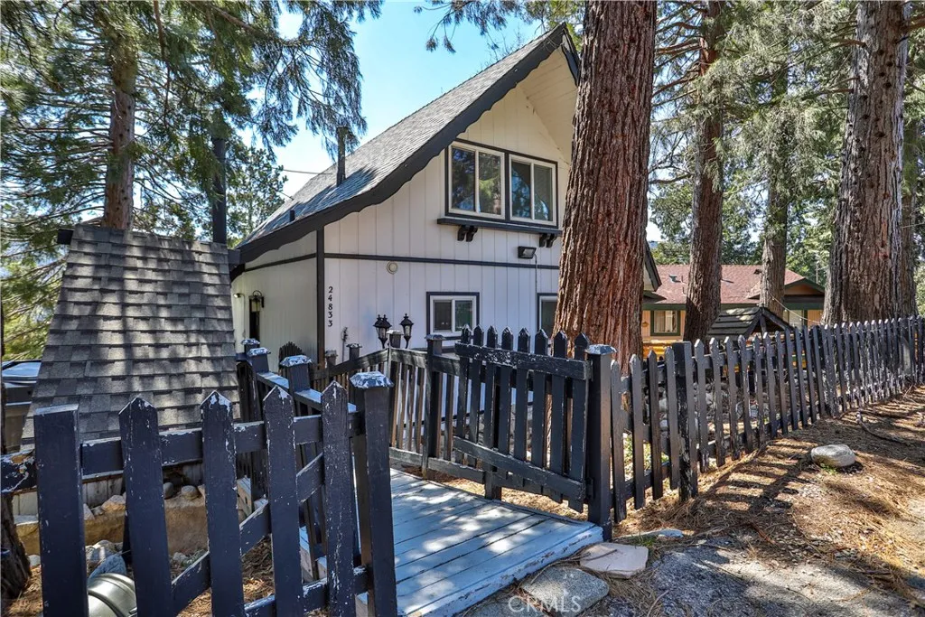 As spring arrives in the mountains, Crestline comes alive with fresh pine-scented air, bright sunshine, and endless opportunities to enjoy the outdoors. Tucked among the towering trees just under a mile from Lake Gregory, this classic A-frame retreat offers the perfect place to experience the season, whether you're starting the morning with coffee on the deck or heading out for a hike along nearby trails like Crestline Canyon, Heart Rock, or Strawberry Peak. Inside, the dramatic living space welcomes you with soaring vaulted ceilings, exposed beams, and expansive windows that fill the room with natural light and frame peaceful mountain views. The open design creates an inviting setting to gather, relax, and enjoy the slower rhythm of mountain life. Imagine afternoons spent with sunlight pouring through the windows, evenings around the fireplace, and weekends hosting friends after a day on the lake. Step outside to the wraparound deck and take in the surrounding forest and mountain scenery. Spring and summer in Crestline invite you outdoors, grilling with friends, reading in the fresh air, or simply enjoying the quiet beauty of the San Bernardino National Forest. With Lake Gregory just minutes away, you can spend your days fishing, boating, kayaking, or strolling along the scenic lake path before returning home to unwind beneath the tall pines. Thoughtfully remodeled and move-in ready, the home blends classic cabin character with modern comfort. Its versatile layout offers multiple spaces to gather or retreat, making it equally suited for full-time living, weekend escapes, o