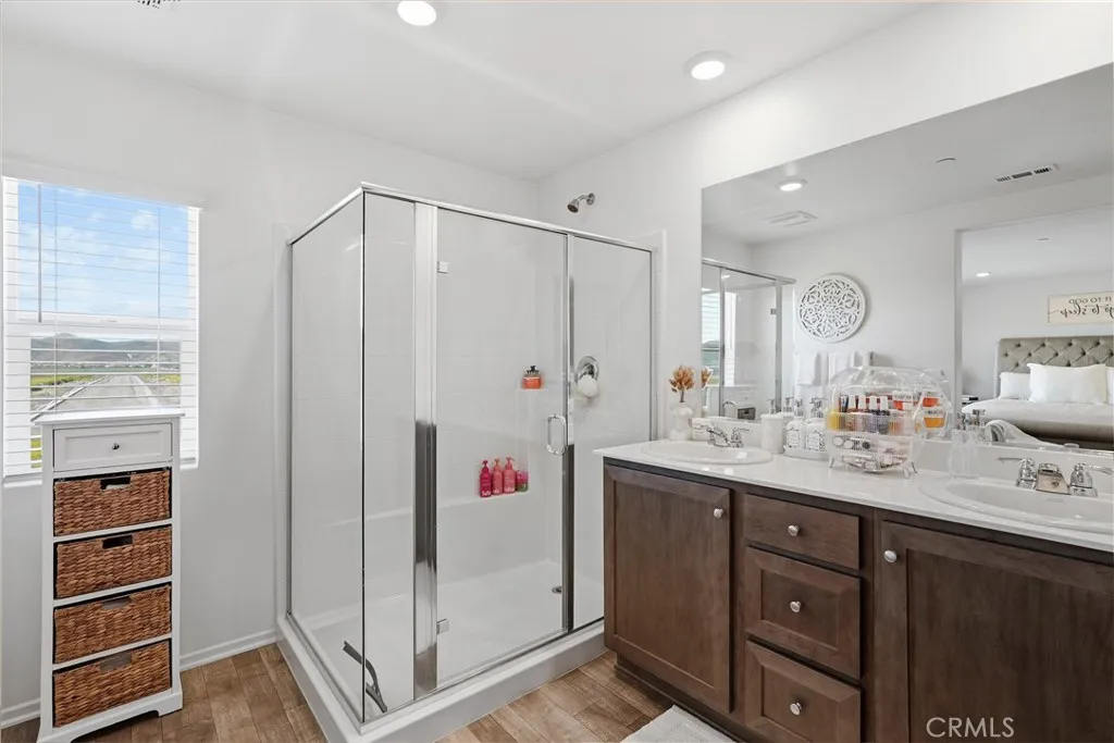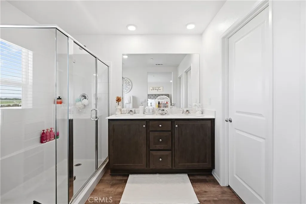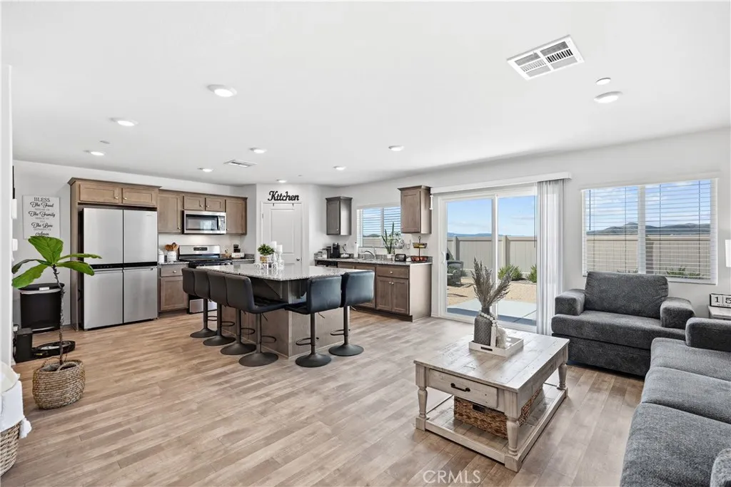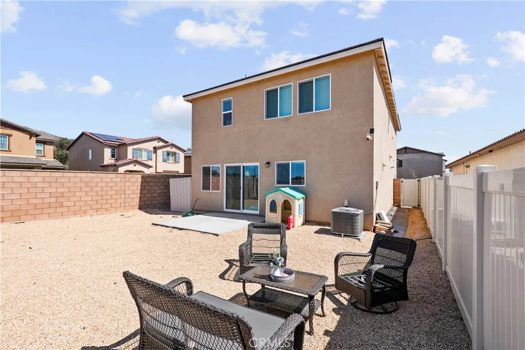 Welcome to Paradera Place community of Winchester! An opportunity to own a New Construction in this community without the wait. This move-in ready property offers the comfort of modern living with thoughtful features already in place. Offering 1,575 square feet, the home features 3 bedrooms, 2.5 bathrooms, and a versatile upstairs loft that can easily function as a home office, playroom, or additional living space. The open-concept floor plan creates a seamless flow between the living room, dining area, and kitchenperfect for everyday living and entertaining. The kitchen serves as the heart of the home with granite countertops, stainless steel appliances, shaker-style cabinetry, a walk-in pantry, and a center island with seating. Luxury vinyl plank flooring, recessed lighting, and abundant natural light add to the homes clean and modern feel. A powder room is conveniently located in the first floor. Upstairs youll find the spacious primary suite with a private bathroom and walk-in closet, along with two additional bedrooms, a full bathroom, loft area, and a convenient laundry room. Additional highlights include PAID OFF SOLAR for immediate energy savings, SmartHome features, and a two-car garage already set up for an electric vehicle. Outside, enjoy a fully landscaped and irrigated front and back yard, creating a cozy and low-maintenance outdoor space ready to enjoy from day one. Situated on a desirable corner lot, the home is within walking distance to the community park and just minutes from the 215 freeway, offering both convenience and neighborhood charm. A wonderful ho