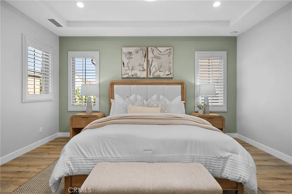 Located at the Village of Stonegate, this detached Mendocino home features a functional 4-bedroom, 4-bathroom floor plan. The residence is characterized by an open-concept layout and includes a sunroom converted into a dedicated office space, providing a quiet environment for remote work. The main level is further enhanced by a conveniently located bedroom and a full bathroom, suitable for guests or multi-generational needs. The second floor opens to a notably sized loft that serves as an ideal secondary office space, complete with a dedicated desk space for study or administrative use. Two additional secondary bedrooms are situated upstairs, each featuring its own en-suite bathroom. The primary suite includes a well-appointed bathroom with dual sinks, a soaking tub, a step-in shower, and a walk-in closet. With brand-new vinyl flooring, fresh interior paint, epoxy garage flooring, and modern lighting upgrades, this home presents a bright, like-new appearance that sets it apart from others. Beyond your doorstep, residents enjoy an exceptional location within walking distance to Stonegate Elementary School, a recipient of multiple Blue-Ribbon and California Distinguished School awards. And easy access to community amenities, including swimming pools, spas, parks, clubhouses, tennis courts, and playgrounds. This home is also served by top-rated Sierra Vista Middle School and Northwood High School. Outdoor enthusiasts will appreciate the close proximity to the Jeffrey Open Space Trail for hiking and cycling, as well as easy freeway access for a seamless commute.