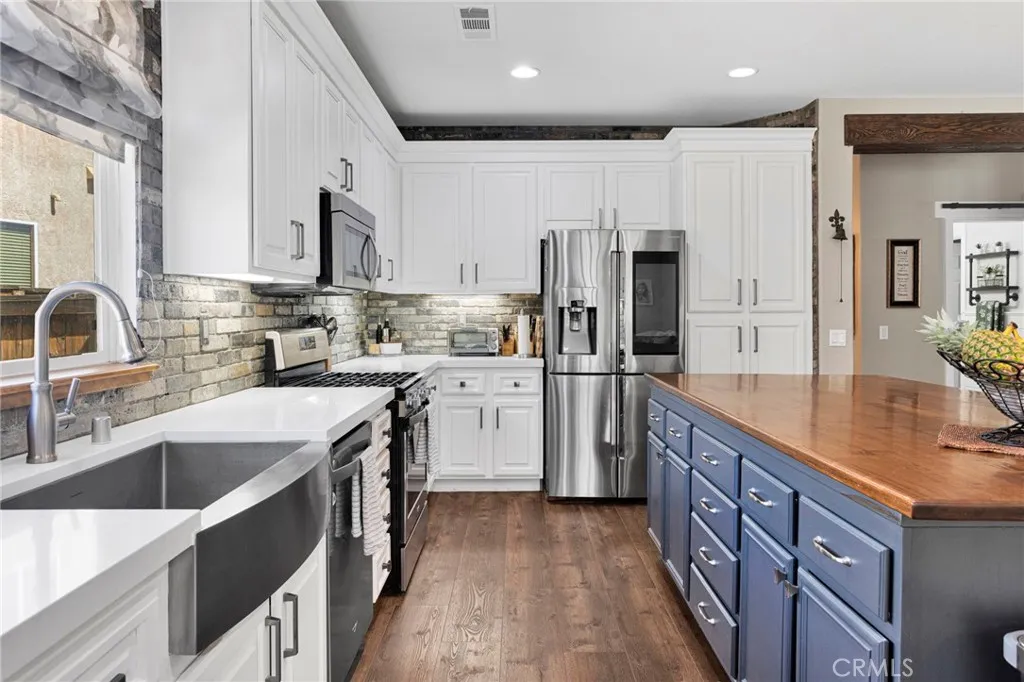 Look no further! This stunning modern farmhouse home in desirable Oak Hills is truly turnkey and fully renovated with attention to detail throughout. Featuring 4 bedrooms and 2 bathrooms, the 4th bedroom functions as a flexible space ideal for a home office, guest room, or den. The upgraded kitchen is a standout, featuring a stainless farmhouse sink, new dishwasher and microwave, 2" thick Silestone countertops, a handcrafted butcher block island, and a full brick veneer backsplash that adds warmth and character. The family room showcases an architectural stone accent wall with a solid wood mantel, creating a perfect focal point. High-end waterproof vinyl plank flooring runs throughout, offering the look of hardwood with durability. A custom-built Murphy bookcase conceals a hidden space that must be seen to appreciate. Additional upgrades include upgraded carpet and pad, barndoor-style sliding doors, board and batten finishes, herringbone brick flooring in the laundry area, and custom cabinetry throughout. The primary suite offers a spacious walk-in closet with built-ins and an upgraded bathroom featuring custom walnut cabinetry, porcelain tile flooring, ambient lighting, a wall-mounted TV, and a relaxing garden tub. The garage includes a built-in workspace, overhead storage racks, extensive attic storage, and a newer garage door motor. Energy-efficient upgrades include a QuietCool smart attic fan and Ecobee thermostat for year-round comfort. The backyard features a concrete patio, large side yard, and professionally installed rip rap rock with dirt lockers, providing excell