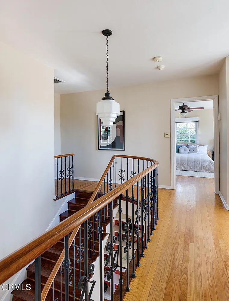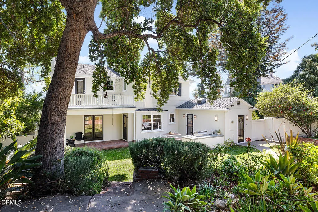 Lovingly maintained & thoughtfully updated, this classic 1941 Colonial Revival offers timeless architecture, gracious living spaces, & exceptional attention to detail in one of Eagle Rock's most sought-after neighborhoods. Designed by noted architect W.W. Warren, the home captures the charm & craftsmanship of its era while incorporating modern updates that make everyday living effortless. A formal entry sets the tone, highlighted by a sweeping staircase. The sun-filled living room features hardwood floors, crown molding, a fireplace, and French doors to the back, creating an easy connection between indoor & outdoor living. Across the entry hall, the dining room flows directly into the kitchen, offering a layout that balances traditional character with modern functionality. Remodeled with a subtle Art Deco influence, the kitchen is both stylish and highly functional. Custom cabinetry, Marmoleum flooring, and a striking suite of appliances anchor the space, including a Thermador six-burner range with griddle, Thermador hood, Thermador refrigerator & freezer columns, a Scotsman nugget ice machine, & beverage fridge. Just outside, a patio with built-in outdoor kitchen extends the entertaining possibilities. Additional main-level spaces include a den with built-in bookshelves & window bench, a powder room, a mudroom with generous storage, and access to the basement laundry room. Upstairs, three bedrooms provide peaceful retreats, including a beautifully appointed primary suite with custom closets, a period-inspired bath, views across Eagle Rock, and a private balcony overlooking