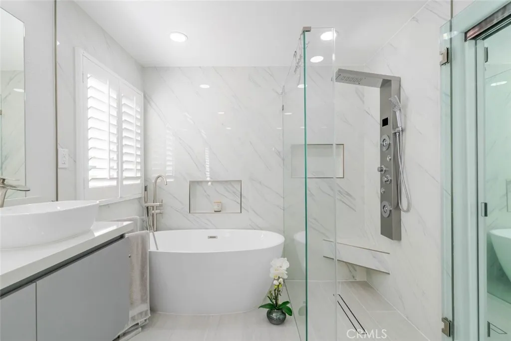 PERFECT HOME in beautiful Fair Oaks Ranch! Exceptional property, meticulously cared for, with extensive high-end upgrades throughout. Upgrades include plantation shutters, hardwood flooring & tile throughout. Crown molding, Corian kitchen countertops, stainless steel appliances, newer insulated garage doors, vinyl fence, newer HVAC and hot water heater. Custom built office downstairs with wall to ceiling cabinetry that can be converted to the fifth bedroom. Stunning Master bathroom featuring a freestanding soaking tub, frameless glass shower with built-in niches, dual vessel sinks, smart toilet and a sleek floating vanity. Designer marble-style tile and modern finishes create a bright and luxurious retreat . Beautifully remodeled guest bathroom showcasing a contemporary vanity with a quartz countertop, designer faucet, and modern cabinetry for added storage. The space is enhanced with elegant marble-style tile flooring and a newer toilet, offering a fresh, clean, and stylish feel. Solar with 2 Tesla batteries that will cover your entire home electricity. Incredible backyard!! Huge patio cover overlooking beautiful salt water pool/jacuzzi with waterslide. Enjoy outdoor living with a custom built-in BBQ island featuring a stainless-steel grill stone veneer finish, and bar-style seating-perfect for entertaining family and friends. The spacious patio area provides a comfortable space for outdoor dining and relaxing by the pool. Grass and gorgeous hardscape with many fruit trees (Almond, Apple, Apricot, Cherry, Fig, Grape, Jujube, Lemon, Loquat, Plum, Pluot, Pomegranate, Quince)