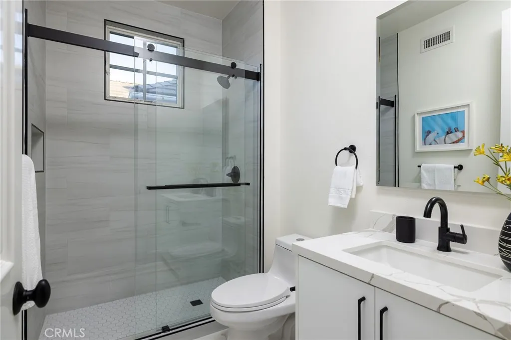Located within the guard-gated community of One Ford Road, this recently refreshed residence presents an exceptional opportunity to own in one of Newport Beachs most prestigious and beloved neighborhoods. Thoughtfully enhanced throughout, the home features remodeled bathrooms and kitchen, refreshed parquet wood flooring, new carpet, and fresh interior paint, creating a bright, cohesive, and move-in-ready living environment. The well-conceived floor plan features a formal living room with fireplace and French doors opening to the front porch, along with a well-lit formal dining room ideal for gatherings. The gourmet kitchen is appointed with quartz countertops, modern cabinetry and brand-new appliances, and thoughtfully positioned adjacent to an al fresco dining area, allowing for seamless California indoor-outdoor flow. A laundry room is conveniently located just off the kitchen, enhancing everyday functionality. Upstairs, the extra-large primary suite serves as a private retreat, offering a spacious sitting area and an ensuite bath complete with dual vanity sinks, a soaking tub, walk-in shower, and walk-in closet. An oversized secondary bedroom provides exceptional flexibility as a guest suite, mother-in-law suite, or multipurpose living space and features an ensuite bath, walk-in closet and private staircase to the lower level common area. Two additional bedrooms share a separate full bathroom, offering both privacy and practicality. The stone-paved side yard offers additional outdoor space, providing a comfortable setting for year-round enjoyment. Completing the residenc