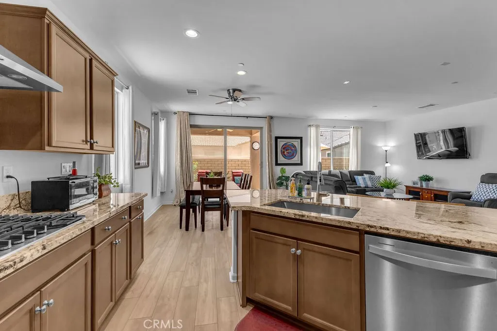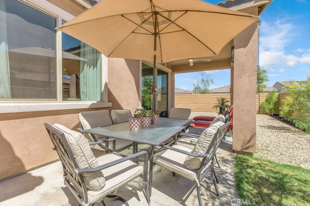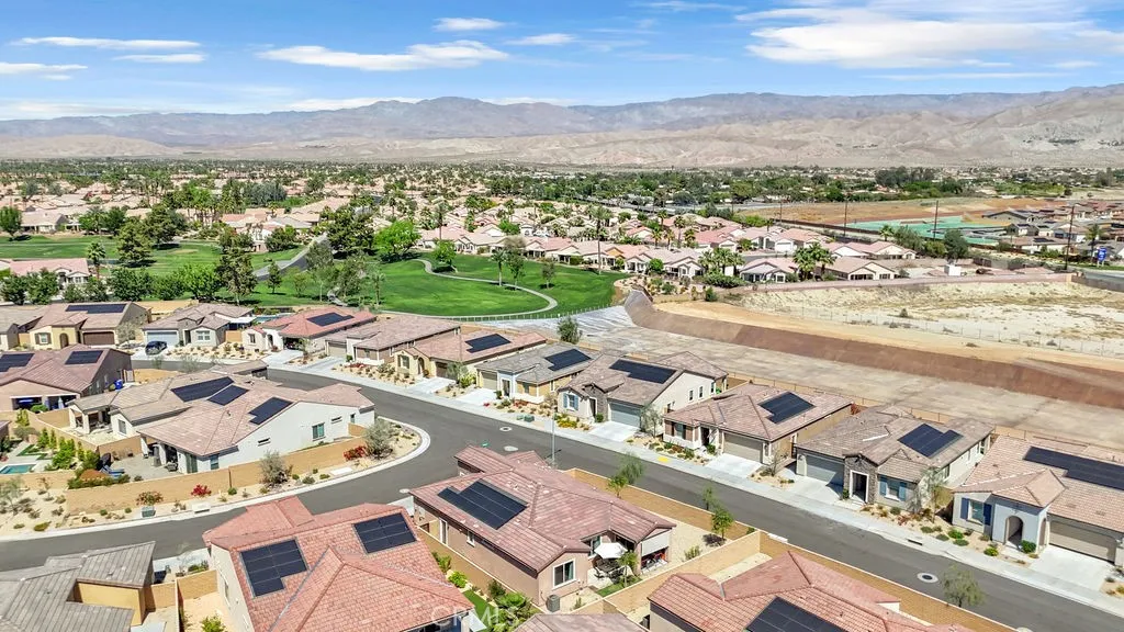Modern desert living meets effortless comfort in this beautifully upgraded Silver Creek floor plan located within the sought-after Domani 55+ community in Palm Desert. Offering 1,732 sq ft, this thoughtfully designed home features 2 bedrooms, 2 bathrooms, and a versatile OFFICE/DEN, perfect as a home office, guest space, or creative retreat to suit your lifestyle. Inside, youll find high ceilings, an open-concept layout, and light porcelain tile flooring that create a bright, airy, and contemporary feel throughout. The gourmet kitchen is both warm and sophisticated, featuring sleek modern wood cabinetry, expansive countertops, UPGRADED Whirlpool stainless steel appliances, a walk-in pantry, and a large island with bar seating, ideal for everyday living and effortless entertaining. The great room is enhanced with built-in surround sound, creating an inviting space to relax or host. The primary suite offers a peaceful retreat with an en-suite bath and an oversized walk-in closet, while the secondary bedroom is privately located, providing comfort and privacy for guests. Seamlessly blend indoor and outdoor living with sliding glass doors that open to a covered patio, perfect for dining al fresco or enjoying quiet desert evenings. The professionally landscaped LOW-MAINTENANCE backyard, complete with lighting and irrigation, adds to the homes tranquil ambiance. Additional highlights include owned solar, numerous upgrades, and a true MOVE-IN ready condition. Furnishings are negotiable outside of escrow, offering added flexibility. Located within Domani, residents enjoy access to