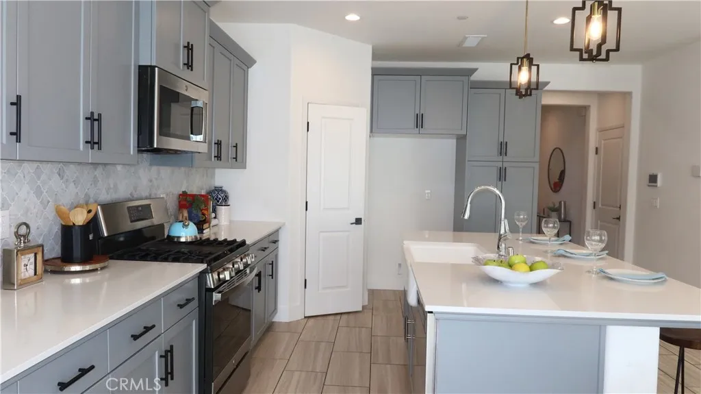 This beautiful home is move-in ready and has 4 bedrooms, 3 bathrooms. It's located in the highly sought-after planned community of Tesoro Viejo. This home has been professionally deep-cleaned. Seller is motivated and this home is ready for its new owner. Featuring an owned solar system, this home offers energy efficiency, and reduced summer electricity bills. Ideal layout includes an isolated bedroom and full bathroom downstairs, perfect for your guests, a home gym, or a home office. Upstairs features a spacious Primary Suite, larger-than-average secondary bedrooms, a laundry room, and a hall bathroom. Stylish 12x24 tile flooring, quartz countertops, modern light gray built-in cabinets, and stainless steel kitchen appliances. Open kitchen concept that allows you to work in the kitchen while entertaining your guest in the spacious Great Room. Modern light fixtures, ceiling fan prewires, and window coverings throughout with curtains except Primary Bedroom, and Great Room. Tesoro Viejo offers a vibrant lifestyle with trails, parks, on-site elementary school, local fire station, healthcare clinic, amphitheater, eatery, and more. To learn more about Tesoro Viejo resort-like life style, go to https://TesoroViejo.com/Blog/Tesoro-Viejo-expands-its-outdoor-amenities/ Contact us today or your Realtor to see this beautiful home today before it's SOLD!
