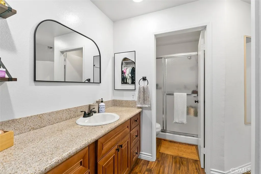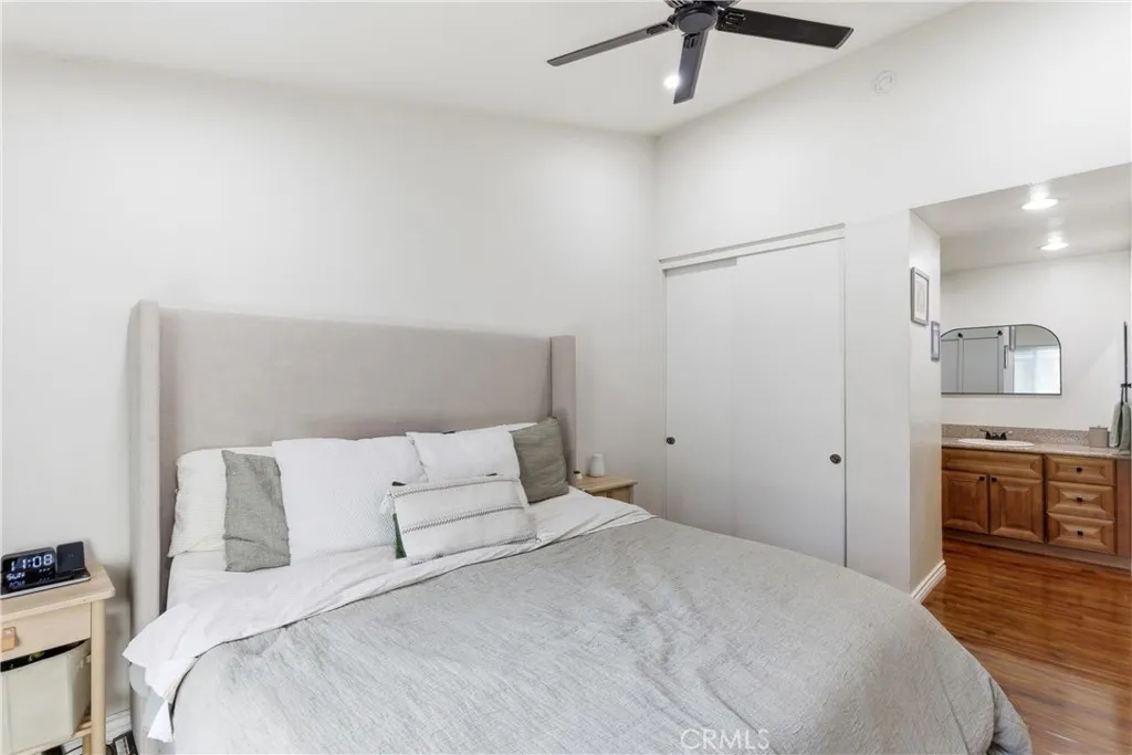 Space, style, and convenience all in one place! This bright and airy end-unit offers open living spaces, 2 bedrooms and 2 full baths, plus easy access to everything. Located in The Villages of Yorba Linda close to the 91 and 241 freeways and great neighborhood amenities, this home puts you right where you want to be. Enter the upper level and youll immediately notice the soaring vaulted ceilings and natural light streaming through the sliding glass door. Rich laminate wood flooring flows throughout the living spaces, connecting the spacious living room, complete with a cozy fireplace, to the dining area and beautifully updated kitchen. The kitchen features quartz countertops, newer stainless steel appliances, a large farmhouse sink, and recessed lighting. Just off the living room, a private balcony offers a relaxing outdoor retreat, with an in-closet laundry room nearby that has been upgraded and includes a newer water heater. Both generously sized bedrooms feature ceiling fans and sliding door closets. The primary bedroom boasts two closets and an ensuite bathroom with a granite-topped vanity and walk-in shower. The secondary bedroom has easy access to an updated full bathroom down the hall. A 2-car detached garage provides plenty of extra storage space. Community amenities at The Villages include a clubhouse, pool, spa, playground, volleyball court, BBQ area, and greenbelt walking paths, with water, trash, and electricity to the detached garage all included. Youre also close to Savi Ranch Shopping Center and highly regarded Yorba Linda schools including Yorba Linda High,