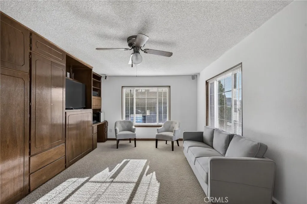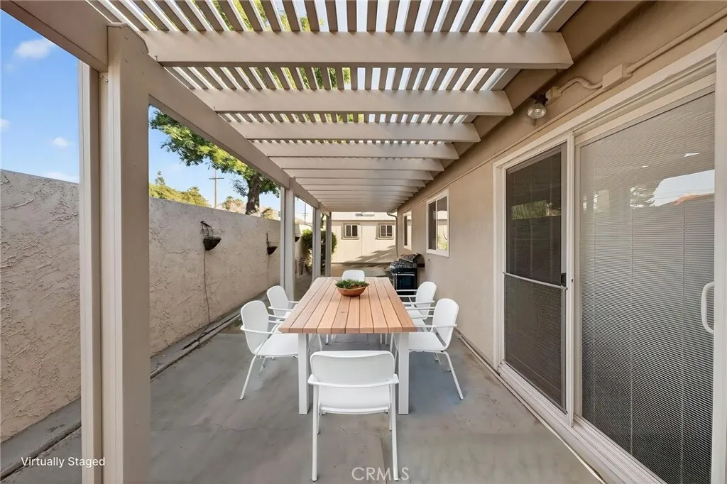 This beautifully maintained single-story home is the one buyers have been waiting for! From the moment you arrive, the excitement begins with standout curb appeal featuring manicured landscaping, an oversized driveway, and a welcoming front approach that instantly feels like home. Step inside to soaring vaulted ceilings, expansive living spaces, and a light-filled floorplan designed for both comfort and entertaining. The formal living room makes a stunning first impression with a dramatic fireplace, rich wood mantel, and oversized windows that flood the space with natural light. A spacious secondary living area offers incredible flexibility and is perfect as a family room, media room, or game room. The kitchen is beautifully appointed with extensive custom cabinetry, granite countertops, recessed lighting, stainless steel appliances, and a center island ideal for prep and gathering. The adjacent dining area opens to the backyard for seamless indoor-outdoor living. The spacious primary suite offers direct patio access, creating a peaceful retreat, while the secondary bedrooms are generously sized and well positioned. Updated bathrooms, abundant storage, neutral tones, and a highly functional layout add to the homes appeal. Step outside to enjoy a large covered patio/pergola, private yard spaces, mature landscaping, and a detached storage shedperfect for entertaining, relaxing, or customizing to your needs. The oversized corner lot provides exceptional versatility, and the aerial views highlight added value with solar panels, ample hardscape, and plenty of parking. This is a