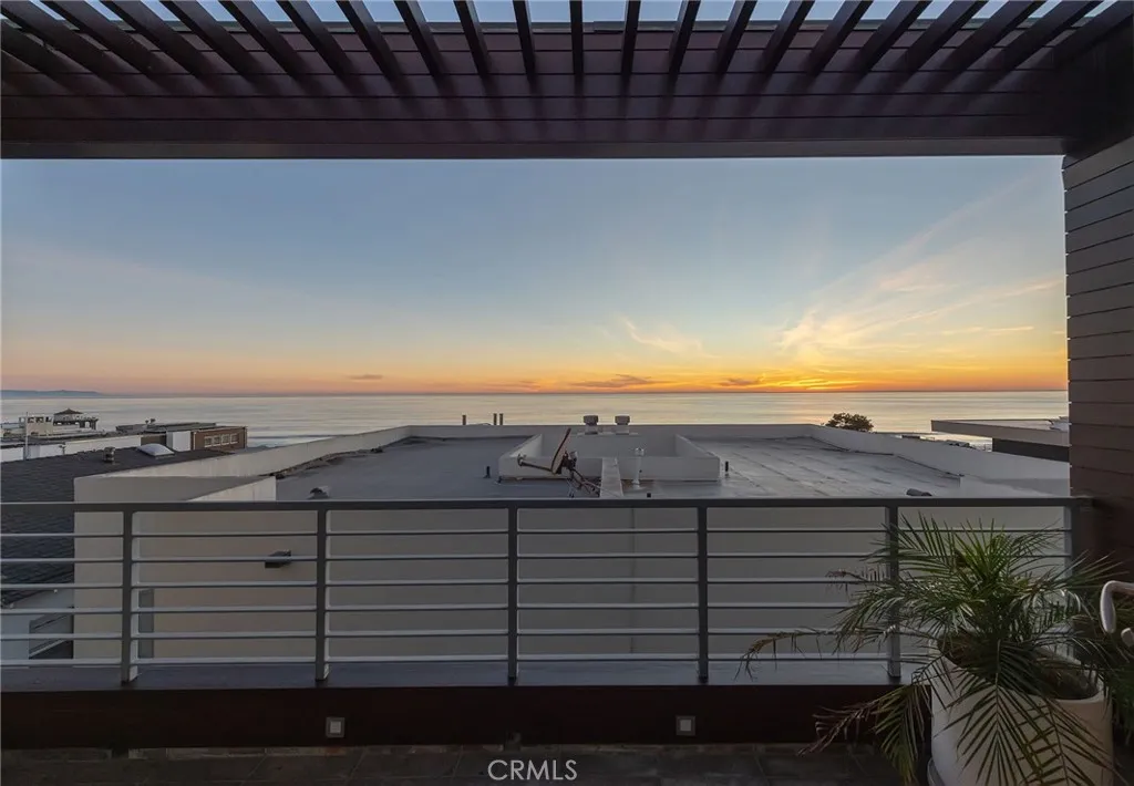 UNBLOCKABLE PANORAMIC OCEAN VIEWS FROM MALIBU TO PV. Perched on one of the most coveted walkstreet 100-block lots in Manhattan Beach, this exceptional residence offers spectacular, permanent ocean viewsa rare advantage created by its unique positioning adjacent to two 60 x 45 lots that preserve sightlines and enhance privacy. Originally reimagined from the studs by renowned architect James Meyer of Lean Arch, the home embodies a clean, minimalist aesthetic with a serene, light-filled ambiance throughout. Thoughtfully designed, it features 4 bedrooms plus a good as it gets ocean view office, 4.5 baths, plus a versatile lower-level guest suite with a custom Murphy bedwhich can serve as the 4th bedroom (BTV). The top floor showcases breathtaking, unobstructed west-facing views stretching from Point Dume to Catalina Island. A stunning great room seamlessly blends indoor and outdoor living, with expansive folding Nanawall doors opening to panoramic ocean vistasperfect for entertaining or simply enjoying the coastal lifestyle. The primary suite is a true sanctuary, offering ocean views, a generous walk-in closet, and a spa-inspired bath complete with terrazzo floors, and an oversized frameless dual shower. The lower-level guest suite is equally impressive, featuring a custom Murphy bed, walk-in closet, and a stylish beach room with an entertaining bar, mini refrigerator, and ice maker. The ensuite bath is beautifully appointed with terrazzo flooring and a frameless glass tile shower. Additional highlights include a 3-stop elevator, 6 car parking, sonos, Lutron electric blinds, an