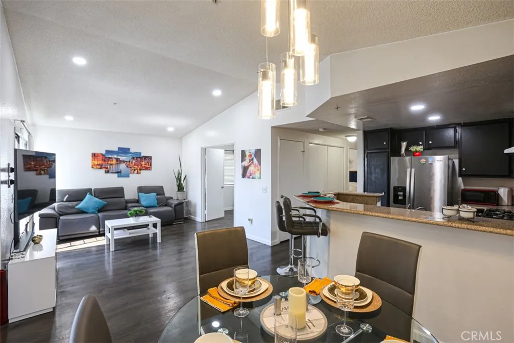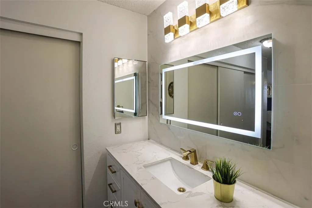 NORTH AZUSA BEAUTY THAT'S EVER SO CUTE AND COZY! Great for First-Time Buyer. Welcome to Crystal Canyon, nestled in the foothills of the Angeles National Forest. If peace, privacy, and natural beauty are what you seek, this is the perfect place to call home.This desirable corner-unit condo features a spacious primary bedroom plus a versatile bonus room/office/den, ideal for a guest room or home workspace. The open-concept layout flows seamlessly to a private deck, perfect for enjoying your morning coffee while taking in serene mountain views.The home has been thoughtfully updated, including a beautifully remodeled bathroom featuring a modern quartz countertop vanity with an undermount sink, an LED backlit mirror with touch controls. Enjoy a spa-inspired shower with marble-look finishes, a glass enclosure, a built-in niche, and a Bluetooth-enabled exhaust fan with integrated speaker and dimmable lighting, creating a relaxing, resort-style ambiance.Additional features include laminate flooring, central A/C and heat, and the convenience of an in-unit washer and dryer area. The property also includes a one-car garage (#31), one assigned uncovered parking space, and an additional guest parking permit.The community offers resort-style amenities, including a pool, spa, jacuzzi, and tennis courts. HOA dues include water and trash, and pets are welcome.Conveniently located near Pioneer Park, hiking and biking trails, and with easy access to the 210, 605, and 10 freeways. A wonderful opportunity to own in a highly desirable location!!!