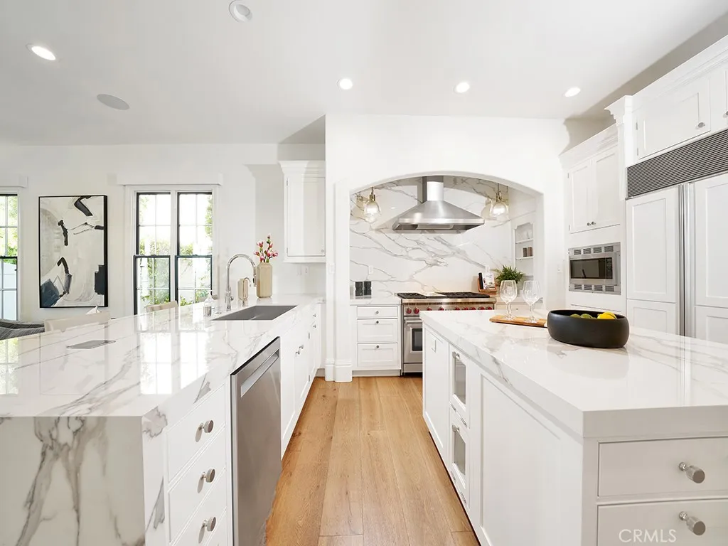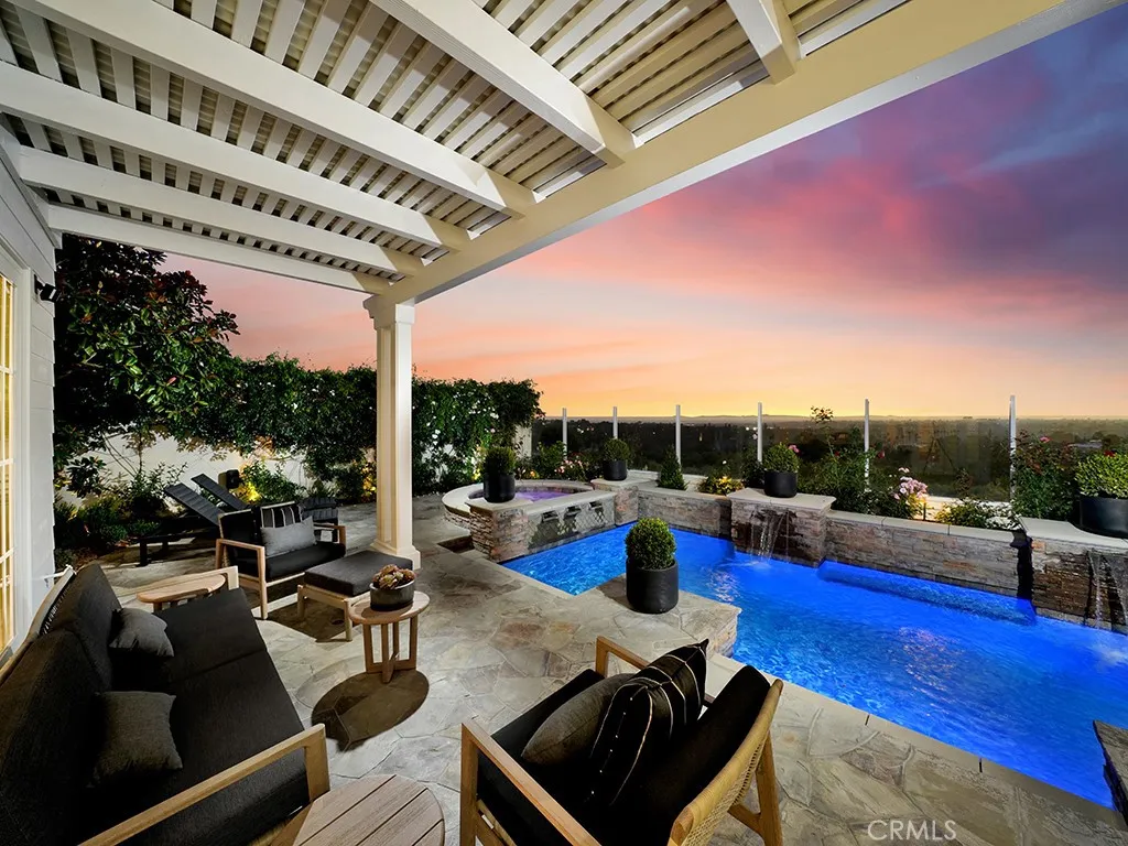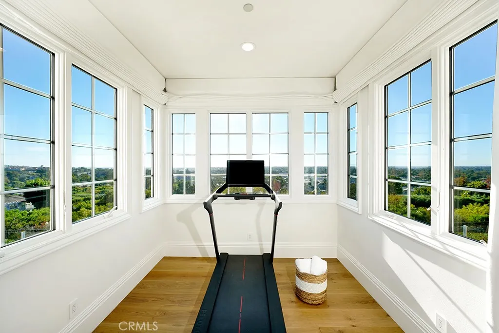CATALINA VIEWS | PROVIDENCE RESIDENCE | ONE FORD ROAD | Privately positioned within one of the most desirable view corridors in One Ford Road, this reimagined Providence Residence captures sweeping coastal panoramas and Catalina Island sunsets, a rare setting reserved for a limited number of homes within Newport Beachs most sought-after guard-gated enclave. Originally part of the Providence collection and the largest floor plan offered, the residence has been refined with curated interior updates, including European wood flooring by Warren Christopher and window treatments by The Shade Store, preserving its timeless American coastal design. Spanning approx. 5,200 sq ft, the residence includes five ensuite bedrooms, including a main level suite ideal for guests or office use, formal living and dining rooms, a study, and open gathering spaces designed to transition naturally toward the outdoor terraces and coastal horizon. The grand formal entry introduces the home with proportion and symmetry as the interiors reveal the Pacific beyond, framed by French doors overlooking the yard, pool, and distant coastline. The gourmet kitchen is appointed with Wolf and Sub-Zero appliances, double ovens, walk-in pantry, and porcelain surfaces, opening to informal living areas designed for both everyday luxury living and entertaining. Upstairs, the primary suite occupies the view side of the home with an intimate fireplace, dual dressing closets, spa-inspired bath with soaking tub, and the signature observatory retreat unique to the Providence plan four, offering elevated coastal sightlines.