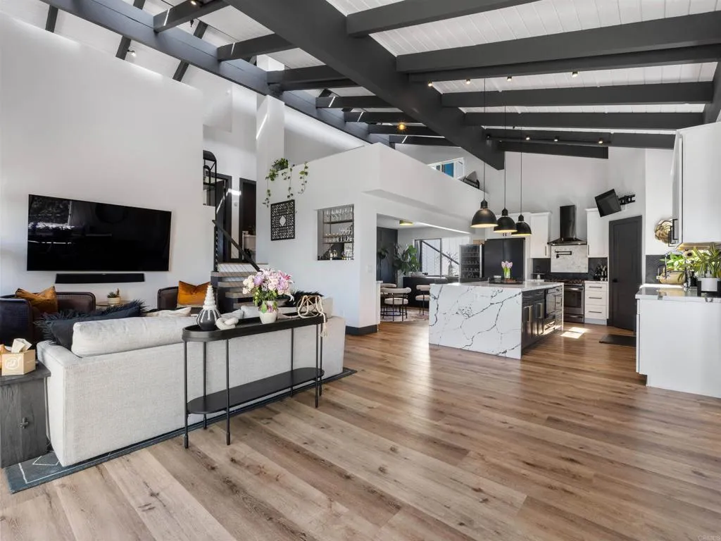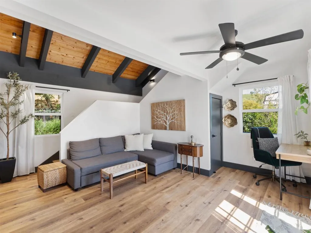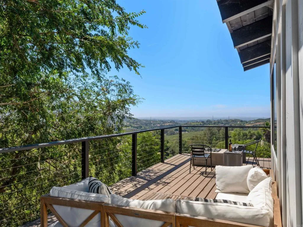 Welcome to 20790 Fortuna Del Norte, a rare and soulful gated property where nature, privacy, and intentional living come together in perfect harmony. Set on over two and a half private acres with sweeping panoramic views, this fully reimagined modern farmhouse retreat offers a lifestyle that is both grounding and elevated, designed for those who value space, serenity, and connection to the outdoors. The approximately 1,500 sq. ft. main residence has been thoughtfully transformed with a focus on light, flow, and well-being. Soaring open-beam ceilings, wide-plank LVP flooring, and a dramatic custom wood-burning fireplace create a warm, inviting atmosphere, while expansive windows frame the surrounding landscapebringing the outside in at every turn. At the center of the home, the chefs kitchen is both beautiful and functional, featuring an oversized waterfall-edge quartz island, black stainless appliances, and curated finishes that make everyday living feel elevated. The open-concept design seamlessly connects indoor and outdoor spaces, creating an effortless rhythm for both quiet mornings and lively gatherings. Step outside and the experience deepens. Multiple outdoor living spaces have been designed to restore and inspire, from the expansive view deck where sunrise coffee becomes a daily ritual, to the private spa and sauna, offering a true at-home wellness experience. Meandering paths, mature trees, and 2-person infrared sauna thoughtfully curated spaces invite moments of pause, connection, and reflection. The approximately 600 sq. ft. detached guest house adds incredible f
