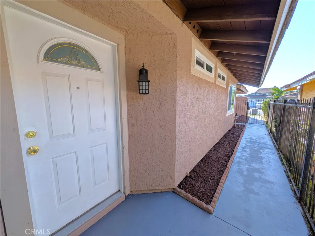 Turnkey and beautifully upgraded, your new 2-bedroom, 2-bath home offers over 1,000 sq ft of thoughtfully designed living space with a 2-car garage and gated entry. Step inside to an expansive living room filled with natural light from two large side-by-side sliding glass doors, creating a bright and inviting atmosphere, and you'll also immediately notice the open and airy floor plan featuring vaulted ceilings with recessed LED lighting, dedicated dining area, and tile flooring throughout the living room, kitchen, bathrooms, and hallway. Just around the corner is your updated kitchen, complete with granite countertops, recessed LED lighting, and ample pantry storage. The hall bathroom has been remodeled with modern finishes, including a quartz countertop, new vanity, new toilet, and a beautifully tiled tub and shower enclosure. Your oversized primary bedroom, complete with vaulted ceilings, LED recessed lighting, and new luxury vinyl plank flooring, offers exceptional spaceideal for a retreat or even conversion to a third bedroom with a little work. The primary bathroom has been tastefully updated with a new quartz countertop, new vanity, new toilet, and a sleek walk-in shower with sliding glass doors. The second bedroom offers plenty of space and also features new luxury vinyl plank flooring. Just outside the double sliding glass doors is your private backyard with a large concrete patioperfect for relaxing or entertaining. Just a few houses down, you'll find access to the Juan Bautista Trail that will take you all the way to Lake Perris! Within walking distance to multipl