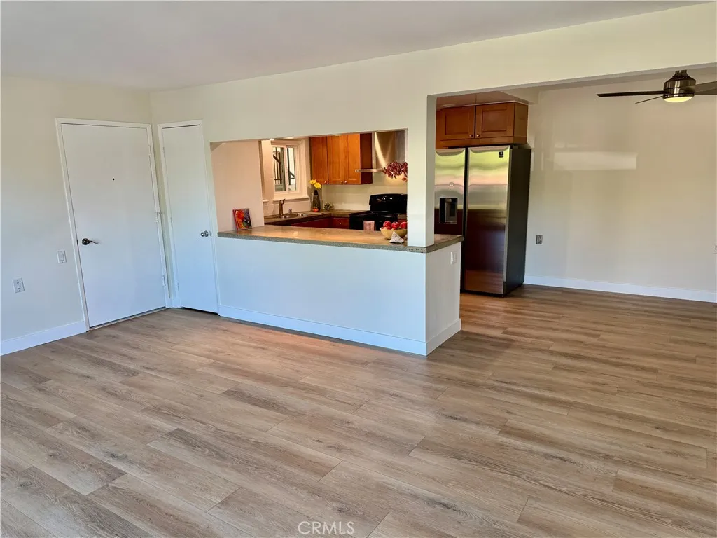 You will fall in LOVE with this stunning Home! This stylish home offers an inviting layout with a wonderful versatility and a location designed for enjoyment. Large balcony offers exceptional outlook to a lush landscape, trees, sunsets & community. With an open floor plan, this home provides a seamless flow that makes everyday living & entertaining enjoyable! Filled with natural light, the great room flows into the kitchen, a welcoming space for both everyday moments and gatherings. At the center of it all, the beautifully remodeled kitchen is ideally positioned for casual meals, conversation, and hosting, truly the heart of this home. Take pleasure in the professionally remodeled large open kitchen w/shaker style, cherry wood cabinets, stylish concrete countertops, stainless steel sink, brushed nickel faucet, stainless steel appliances ,standard cooktop & vented hood, refrigerator. Spacious living room with New elegant Luxury vinyl flooring thru out entry, hallway, kitchen & both baths, living room, dining room. New Luxury carpeting in both bedrooms. Smooth ceilings, recessed lighting, dual pane windows. Both baths updated with custom cabinets . Stacked washer/dryer hook-ups. Enjoy all of the incredible amenities of the resort style living in Laguna Woods Village. 27-hole championship golf course, 9-hole executive par 3 courses, tennis, paddle tennis, pickle ball, lawn bowling, 2 fitness centers, 7 clubhouses, 5 swimming pools, equestrian center, horse stables, gardening, art studio, shuffleboard courts, craft and hobby workshops, game rooms, billiard rooms, world-class wo