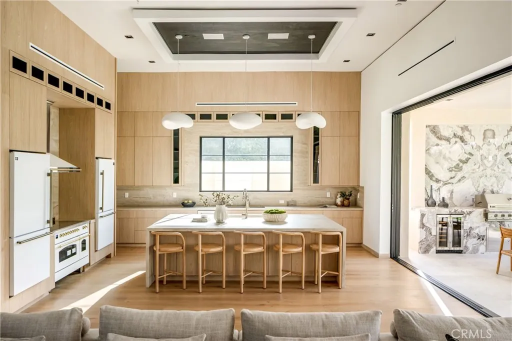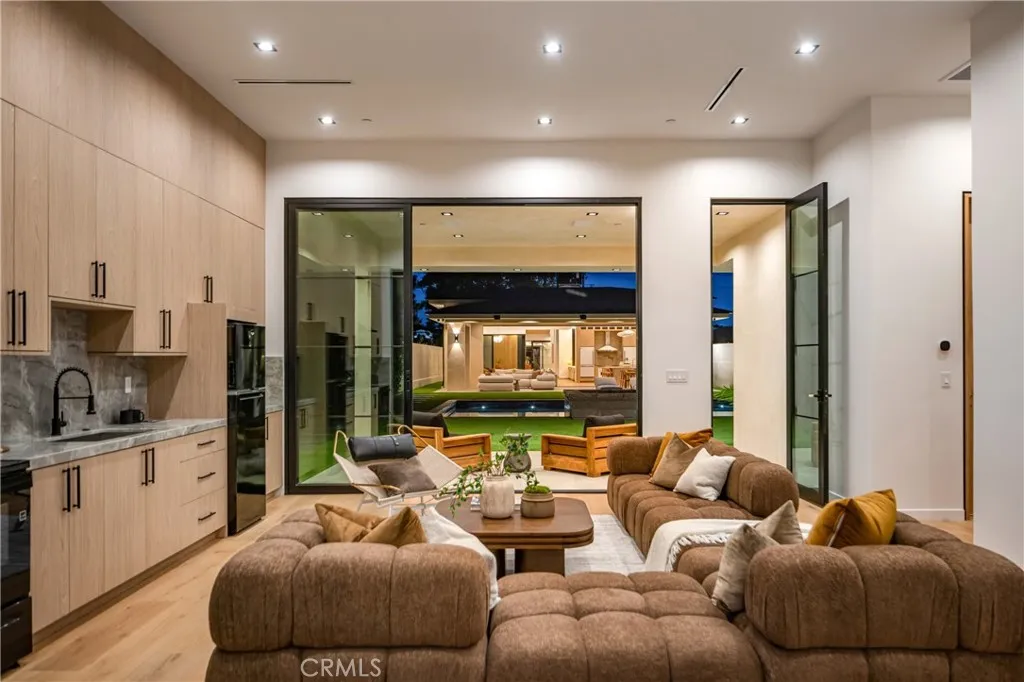 A newly built architectural residence in prime Valley Village, just moments from Studio City, set on an expansive lot and defined by seamless indoor-outdoor living. With a house built 5,525 and an additional 1,348 covered patio area for endless entertainment sitting on approx. 17,000 SF lot! Rare oppurtunity. Soaring ceilings of 14'! Clean lines, and a warm modern palette shape the homes open layout, where expansive walls of glass connect the main living spaces directly to the backyardcreating a natural extension of the interior. The residence offers 6 bedrooms and 5.5 bathrooms, including a primary suite with a spa-like bath, dual sinks, a soaking tub, and expansive walk-in closets. Each bedroom is thoughtfully positioned with its own connection to the outdoors, many opening to private patios through full-height glass doorsoffering a level of privacy and indoor-outdoor continuity rarely found. Additional features include full smart home integration with security cameras, intercom, and Ring system, PAID-OFF Solar system main house and ADU, Roman clay plaster finishes by Portola on the walls and ceilings, a spacious laundry and mudroom, reading nook, walk-in pantry, and layered design details including custom wall treatments and architectural elements throughout. The backyard is designed for both everyday living and elevated entertaining, featuring a pool with dual baja shelves, a raised spa with a three-way waterfall, and Jandy equipment. A covered patio with its own fireplace and built-in BBQ area is framed by bookmatched porcelain slab walls, creating a striking outdoor s