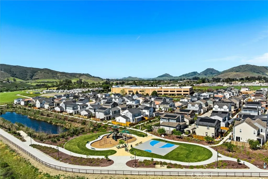Welcome to 165 Earthwood Lane, a nearly new home in the highly sought-after Avila Ranch community of San Luis Obispo; known for its welcoming atmosphere, friendly neighbors, and thoughtfully designed surroundings. Built in 2023, this 3-bedroom, 2.5-bath residence offers approximately 1,808 sq ft of beautifully appointed living space, complete with modern finishes and owned solar. The light-filled main level features 10-foot ceilings, wood-look tile flooring, and an open-concept design that seamlessly connects the living room to the outdoor patio, perfect for effortless indoor-outdoor living. The kitchen is both stylish and functional, showcasing quartz countertops, a subway tile backsplash, gray shaker cabinetry, a contrasting white island with bar seating, stainless steel appliances, and a spacious pantry. It flows naturally into the adjacent dining area, ideal for both everyday living and entertaining. Upstairs, the primary suite offers a peaceful retreat with large windows, a walk-in closet, and a well-appointed bathroom featuring dual vanities and a tile shower. Two additional bedrooms share a thoughtfully designed adjoining bathroom with dual sinks and a separate tub and shower area. A dedicated laundry room with washer and dryer, along with a hallway linen closet, adds everyday convenience. Outdoor living is equally inviting, with a charming, covered wrap-around front porch and a low-maintenance enclosed side yard complete with a paver patio, perfect for relaxing or hosting. Ideally located just steps from Sunny Vista Park, residents can enjoy multiple play structures