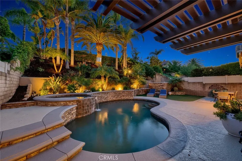 Welcome to 8020 E. Santa Cruz Avenue, a Turn-Key Dream Home Located in the Highly Desirable Santiago Hills Community of Orange. This Immaculate Home Boasts Four Bedrooms, Three Full Bathrooms (One Main Floor Bedroom That is Currently Being Used as an Office), Soaring Ceilings, Plantation Shutters, Hardwood Floors, Resort-Style Backyard, Built-In Speakers, Electric Shades, and Custom Upgrades Throughout. The Living Room Enjoys a Vaulted Ceiling and Opens to the Dining Room with Backyard Access. The Well-Appointed Kitchen Showcases a Peninsula with Seating, Granite Counters, Double Ovens, Stainless Steel Appliances, Stone Floors, Crown Molding, and Breakfast Nook Surrounded by Backyard Views. The Family Room Boasts a Stone Fireplace, Backyard Access, and Opens to the Kitchen. The Spacious Master Suite Enjoys a Vaulted Ceiling, Backyard Views, Dual Vanities, Walk-In Closet, Walk-In Shower, and Separate Tub. The Entertainers Backyard Features a Luxurious PebbleTec Pool & Spa with Waterfall, Turf, Covered Patio, Outdoor Kitchen with Built-In BBQ, Mini Fridge, and Bar Seating; Lush Landscaping, and Maximum Privacy. Indoor Laundry Room with Built-In Cabinets, Sink, and Backyard Access. Direct Access Three Car Garage with Epoxy Floors, Workbench, and Built-In Storage. Walk to Chapman Hills Elementary and Peters Canyon Regional Park. Short Drive to Orange Canyon Village Shopping Center, Restaurants, Irvine Park, and Multiple Walking/Hiking/Biking/Horse Trails. Easy Access to the 241/261 Toll Roads and 5/55/22 Freeways. No HOA & No Mello-Roos! 8020 E. Santa Cruz Avenue is a Must See!
